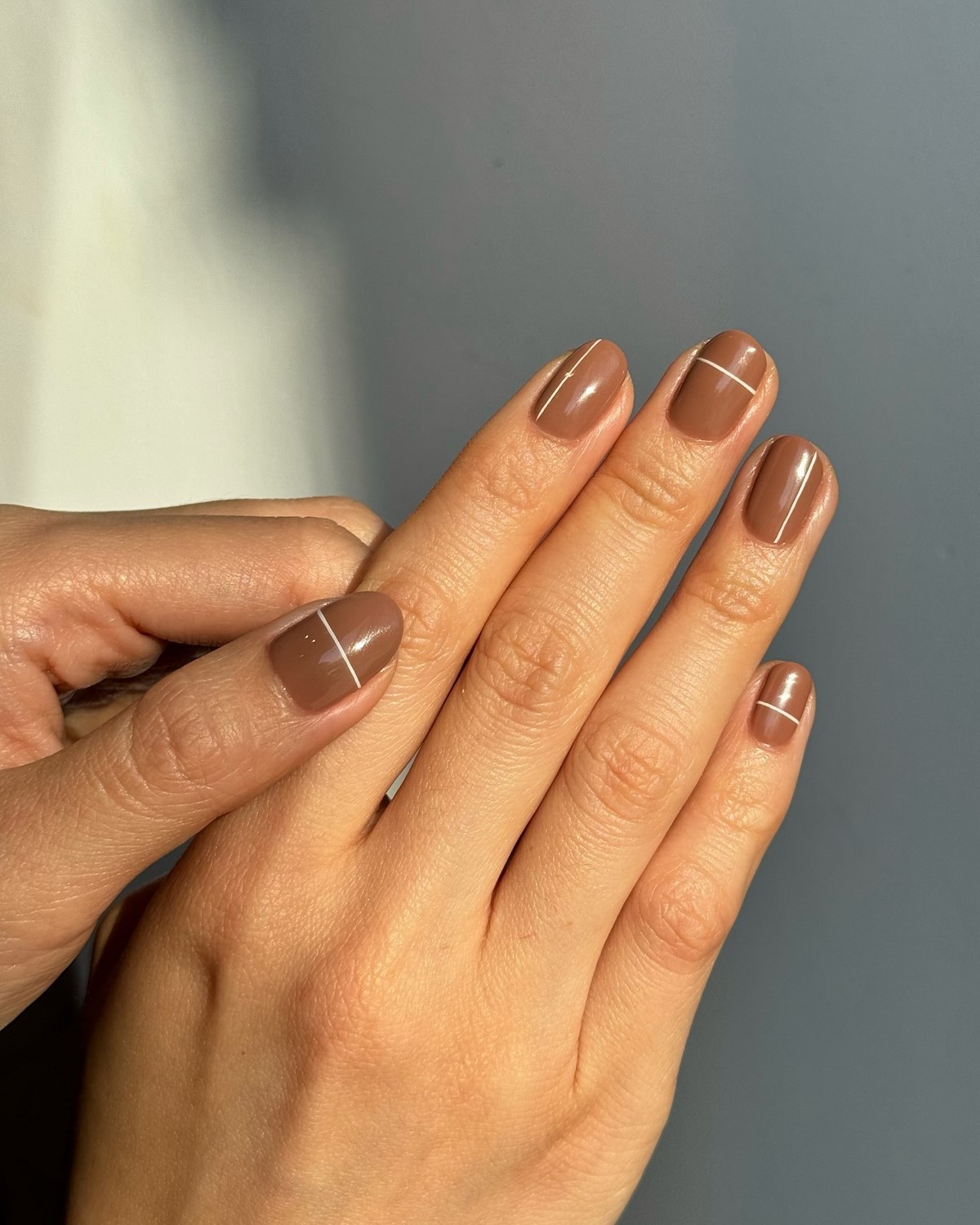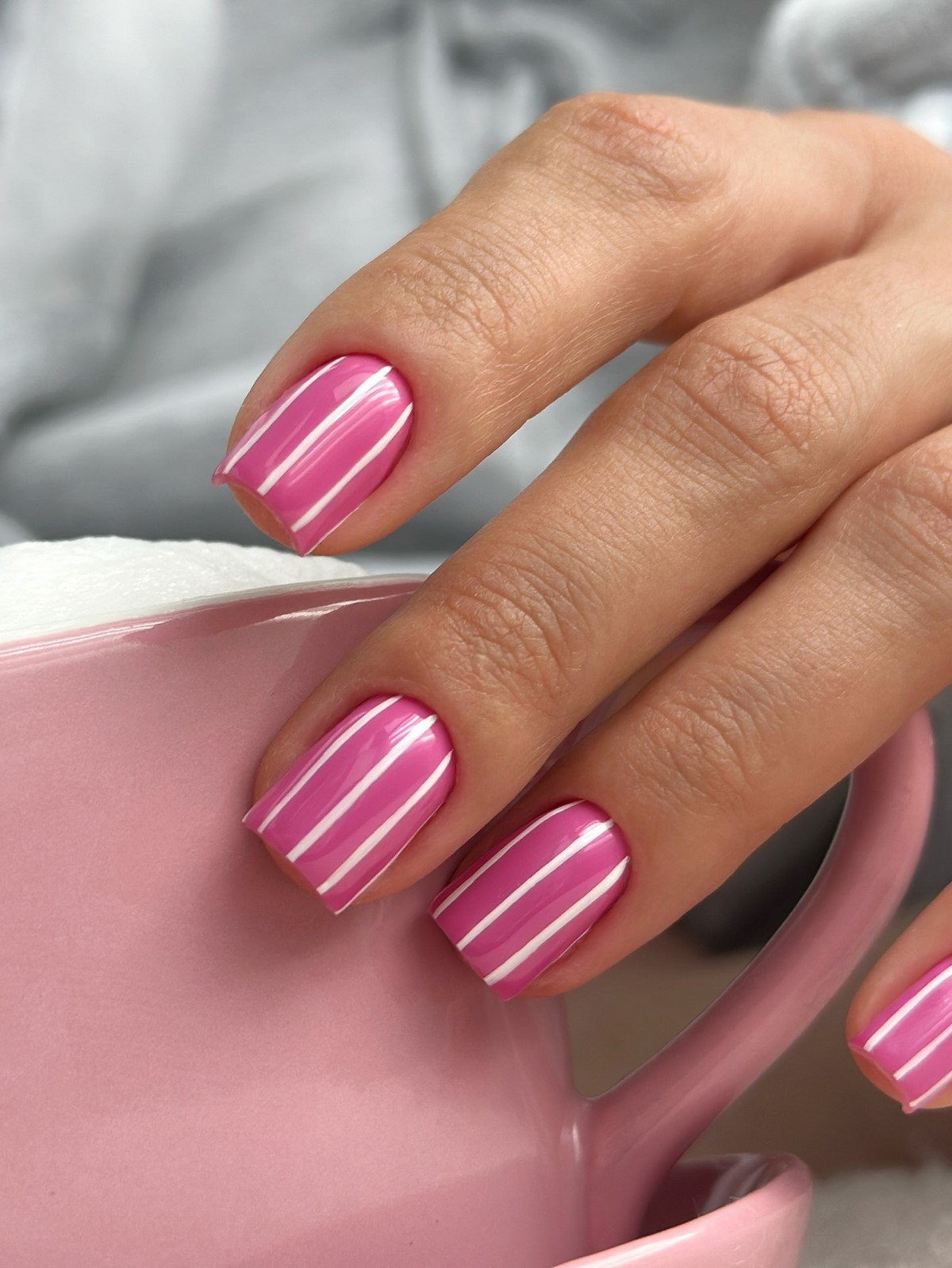 Найчастіше смужки виконуються в близьких за тоном відтінках або з використанням металізованих пігментів. Такий дизайн виглядає стильно, але не перевантажує образ, що робить його ідеальним вибором для повсякденного манікюру.
