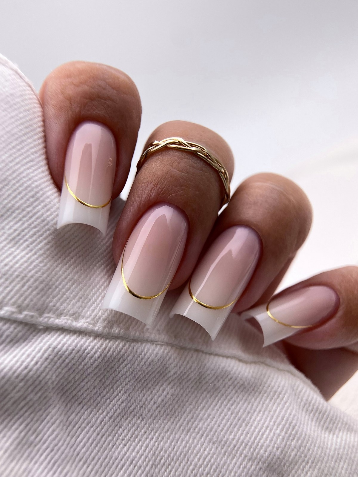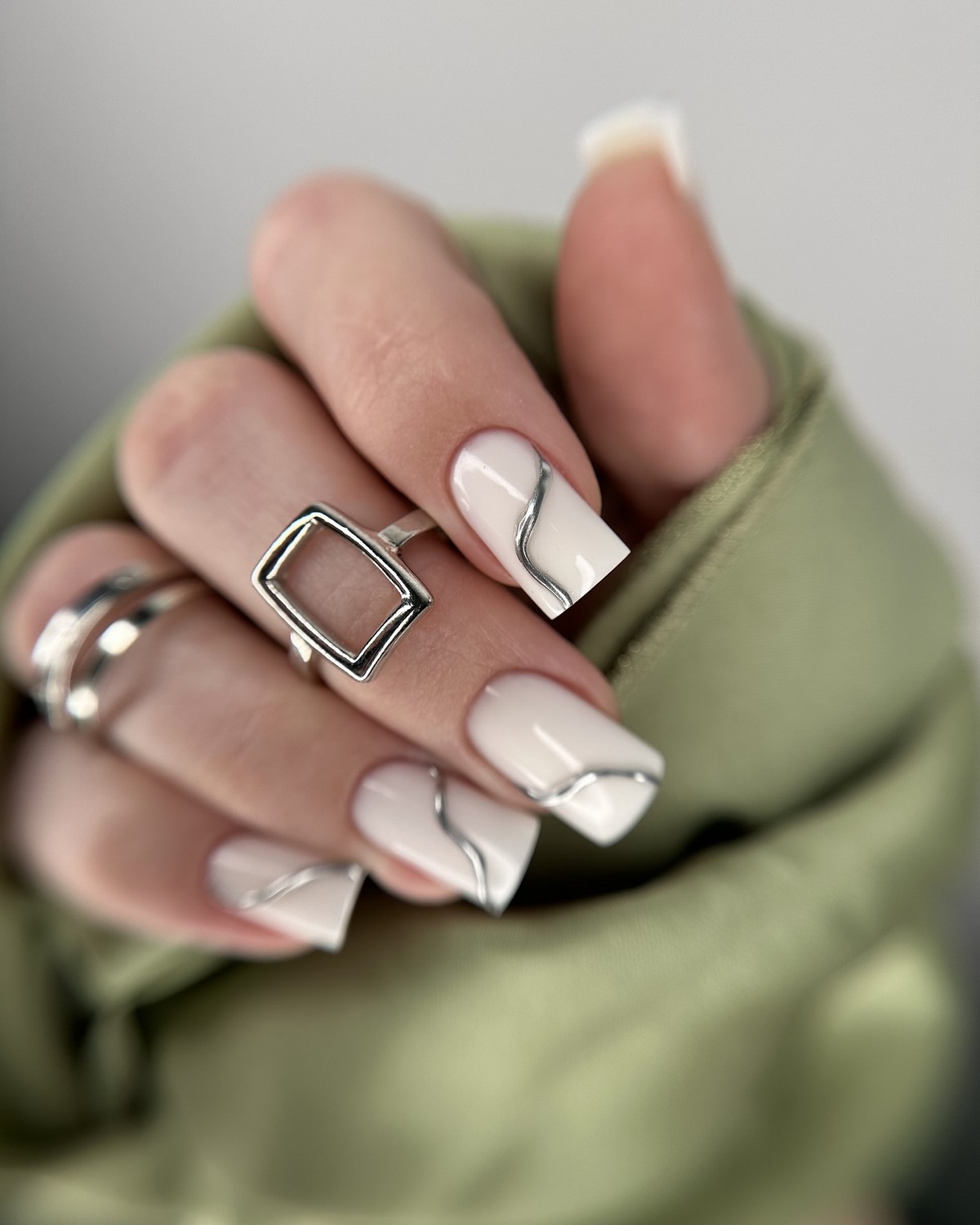 Техніка підходить як поціновувачкам мінімалізму, так і тим, хто любить сучасні тренди без зайвої строкатості. Метал може бути у вигляді тонкої лінії або більш широкої пластини — залежно від бажаного ефекту. Найактуальніші відтінки зими 2025-2026 — холодне срібло, рожеве золото й легкий бронзовий метал. Такий френч універсальний: доречний як у будні, так і в урочисті моменти.