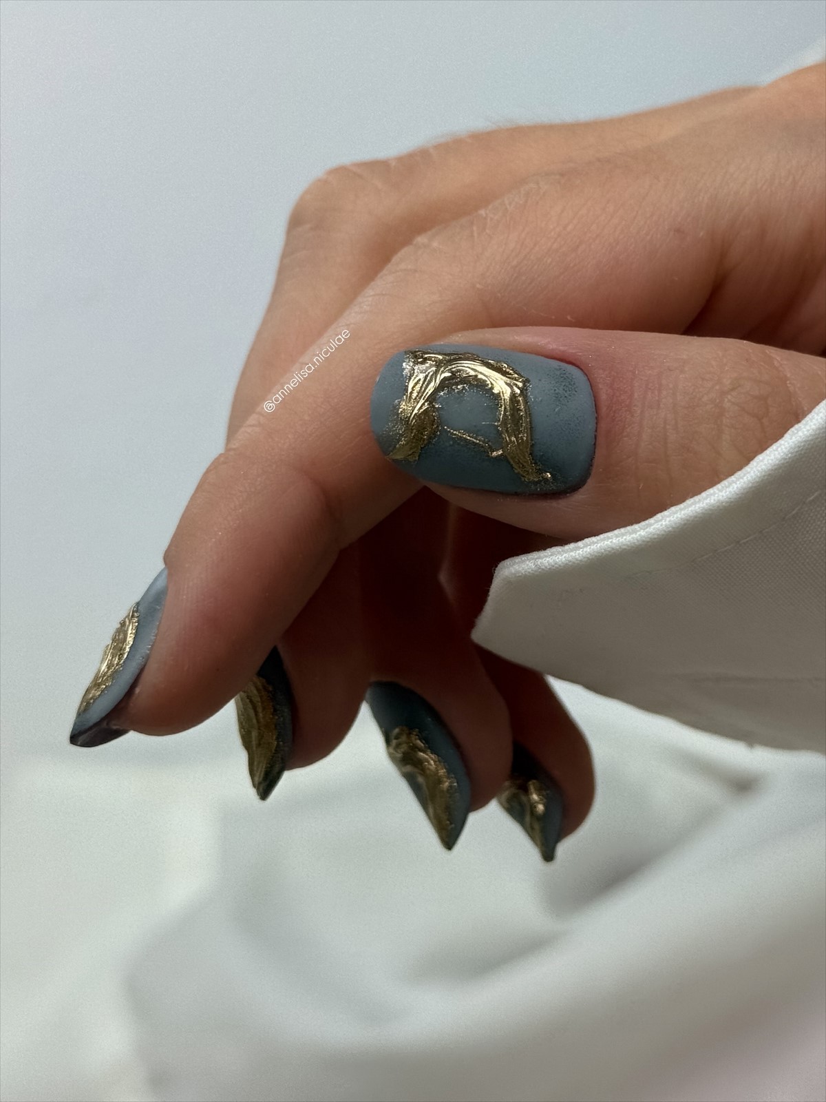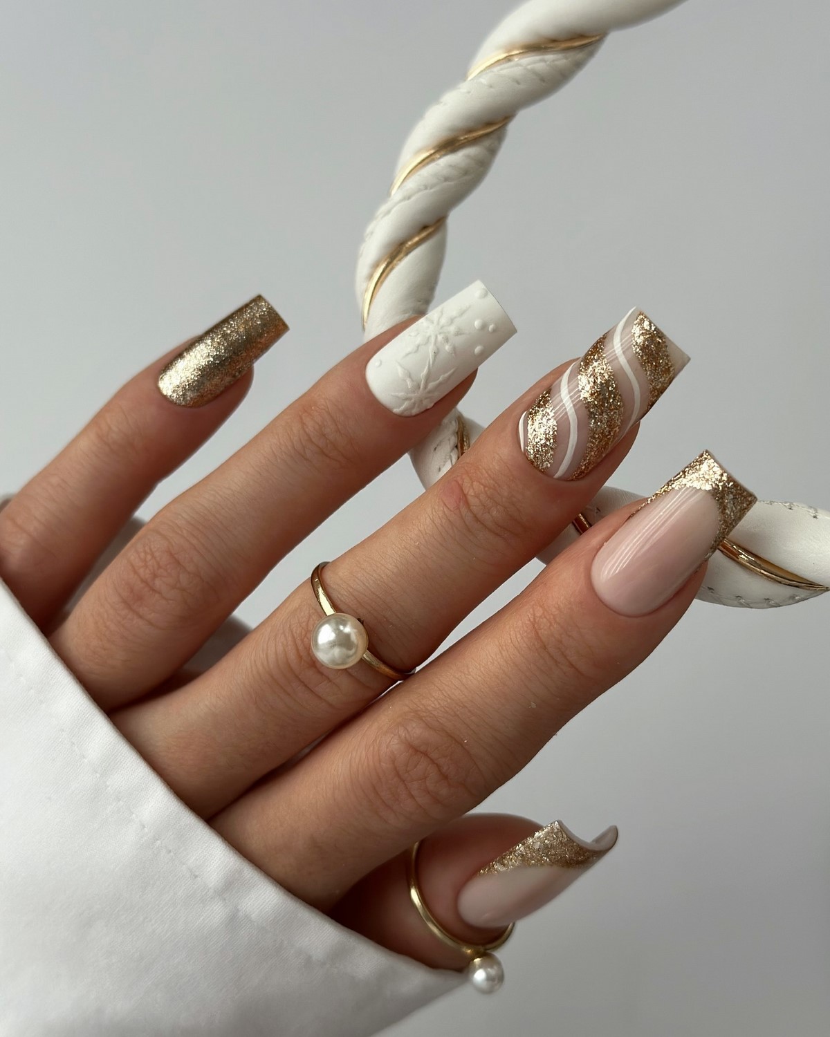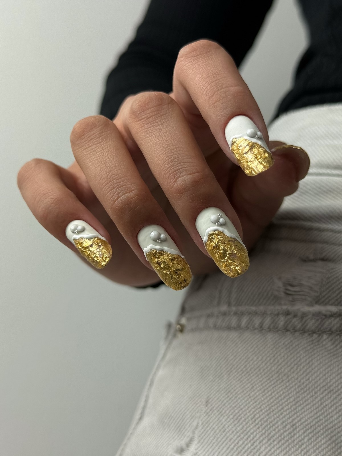 Сусальне золото — це поєднання розкоші, мистецтва та ефекту вінтажу, яке чудово пасує до зимових свят. Такий декор додає нігтям благородного сяяння, створюючи асоціації з ювелірними прикрасами, антикварними витворами й високою модою. Майстри використовують тонкі пластини сусального золота, які накладаються хаотично або у вигляді акуратних фрагментів.