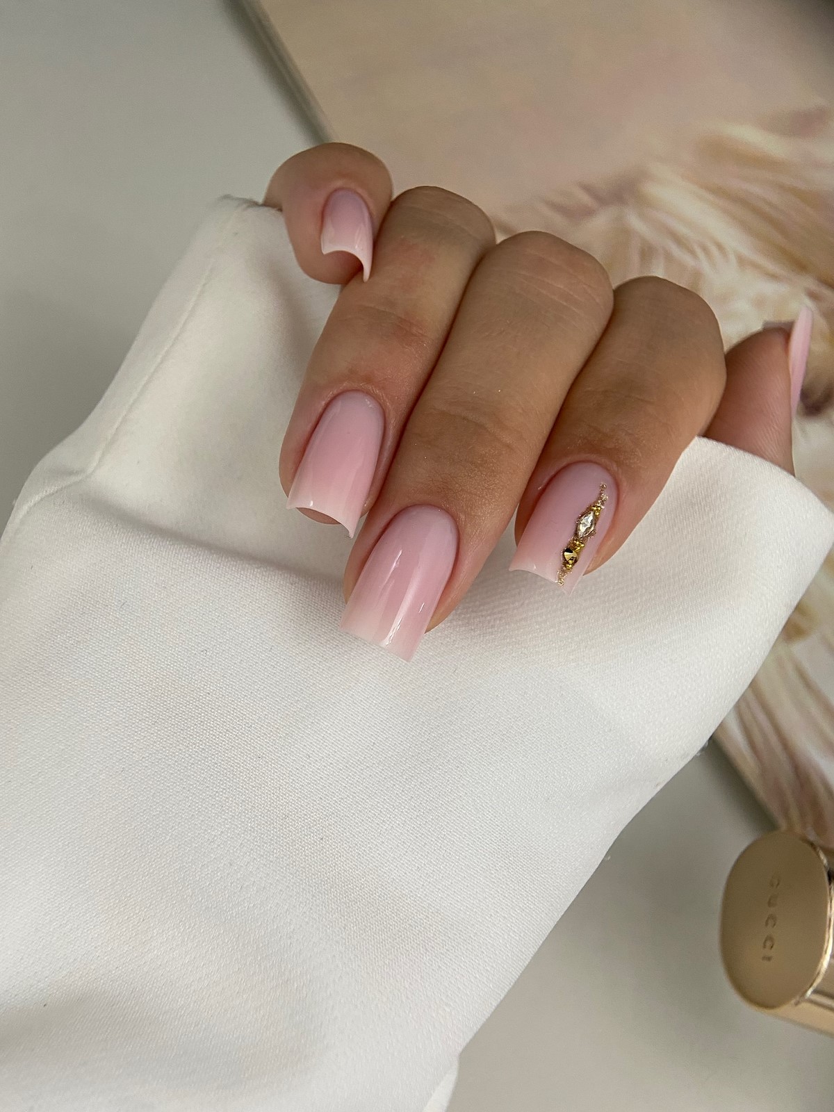 Градієнт з металевим сяйвом може виконуватися як на всіх пальцях, так і лише на одному, щоб додати акцент. Найпопулярніший тренд — перехід із холодного срібла у тепле золото, який створює об’ємний і світловідбивний ефект. Металевий градієнт чудово пасує як до коротких, так і до довгих нігтів, дозволяючи підкреслити форму та плавну лінію силуету. Це стильний вибір для поціновувачок сучасного глянцю.