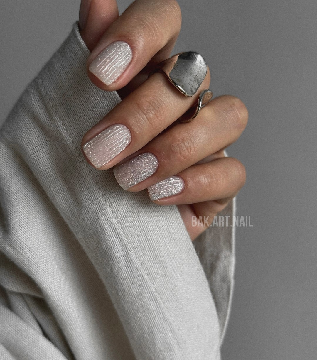 Актуальними є комбінації різних текстур у межах однієї колірної гами: матовий фініш поєднується з глянцевими елементами. Особливої елегантності нюдовому манікюру надають найтонші геометричні візерунки або мінімалістичний декор у тон основного покриття.