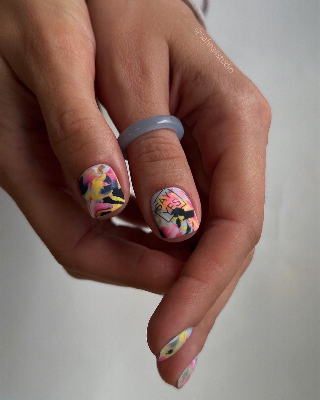 Особливої актуальності набувають техніки створення «акварельних розводів» і «мармурових розводів» з використанням декількох відтінків. Такий манікюр часто доповнюється тонкими золотистими або сріблястими лініями, що об’єднують композицію.