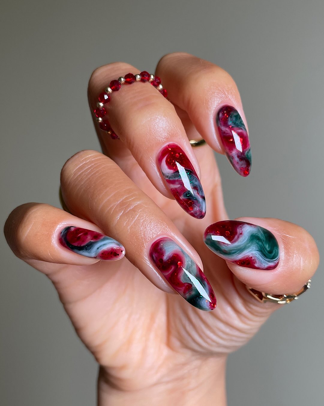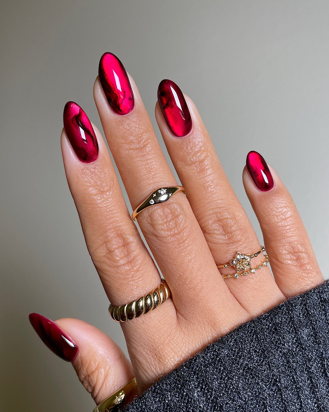 Особливо актуальні холодні тони, графіт, смарагд, темно-синій і шоколадний. Такий манікюр виглядає ефектно навіть без додаткового декору і відмінно підкреслює форму нігтів.