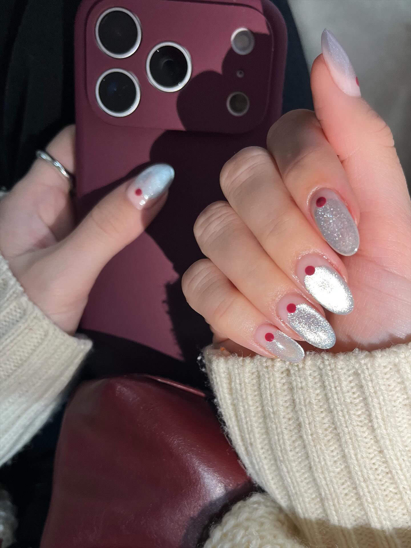 Такий манікюр виглядає святково, але не зухвало. Він відмінно підійде для романтичних зустрічей і вечірніх виходів.