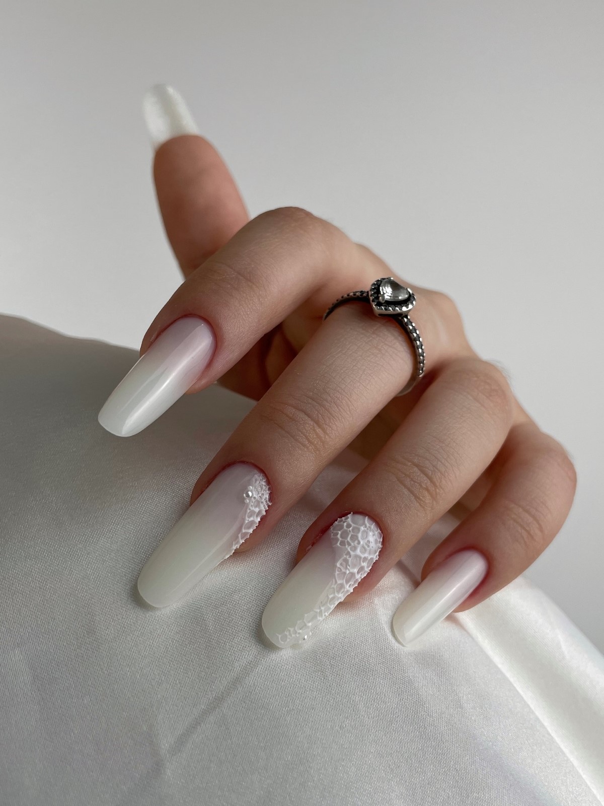 Cloud Dancer вважається одним з найбільш універсальних відтінків року. Це м’який молочний колір з холодним підтоном, який візуально освіжає руки і робить манікюр максимально акуратним. Він відмінно підходить як для однотонного покриття, так і для бази під дизайн.