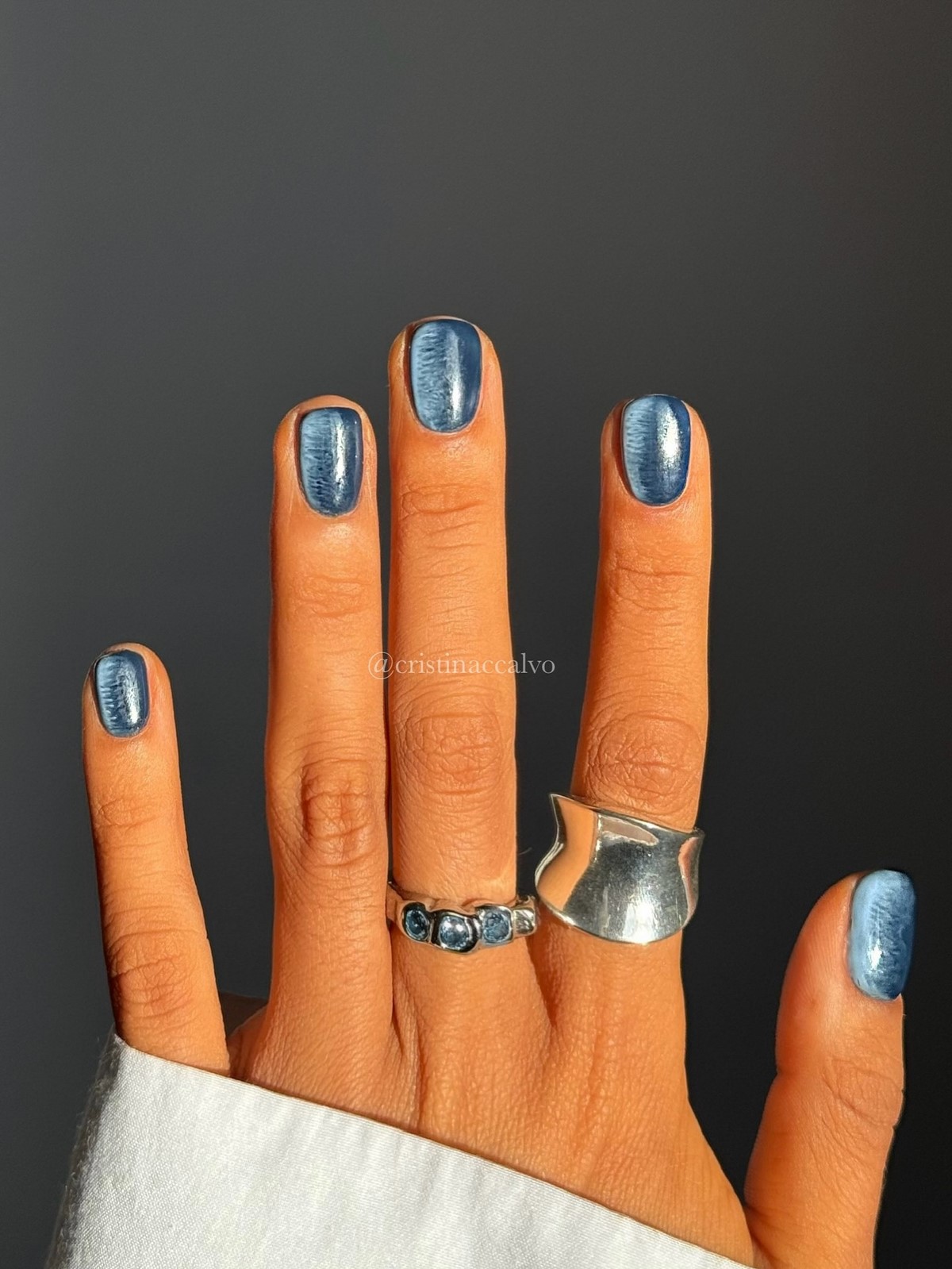Техніка котяче око залишається в числі фаворитів завдяки своєму ефекту руху світла. Цього року популярні більш м’які переливи і складні відтінки без надмірного контрасту. Такий дизайн виглядає елегантно і підходить для вечірніх образів.