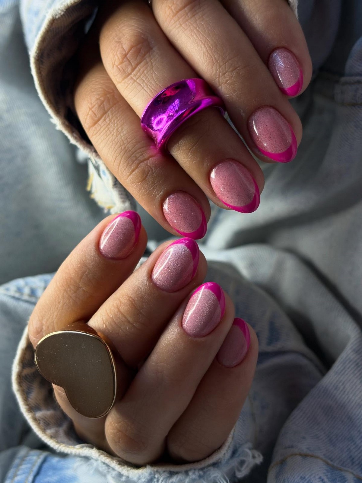 Френч в 2026 році відходить від класичного білого краю. У моді кольорові лінії, напівпрозорі основи і нестандартні форми посмішки. Це робить звичний дизайн більш свіжим і актуальним.