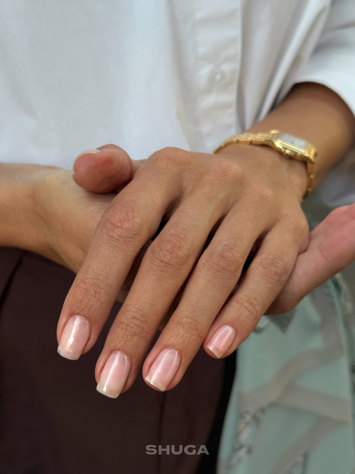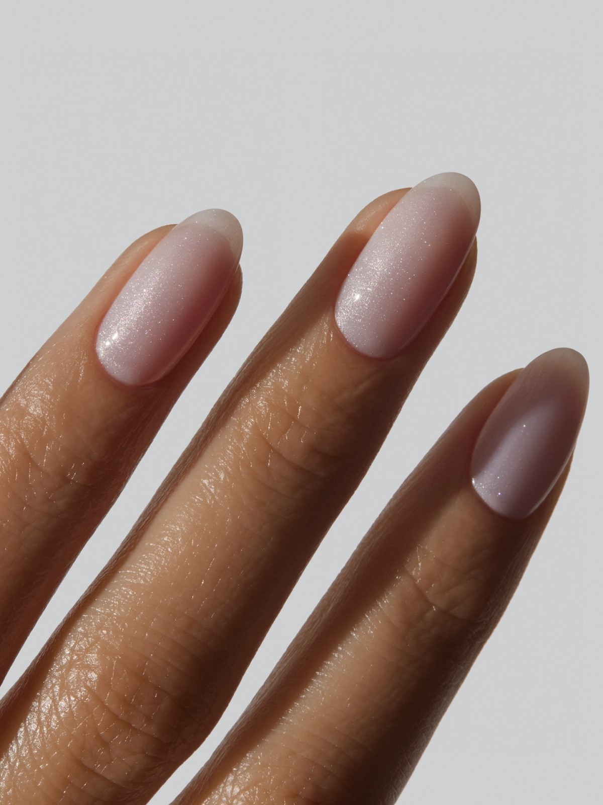 Перламутрове напівпрозоре покриття створює ефект внутрішнього світіння нігтів. Воно красиво переливається при різному освітленні і робить руки візуально більш доглянутими. Такий варіант відмінно виглядає без додаткового декору, підкреслюючи текстуру і чистоту кольору.