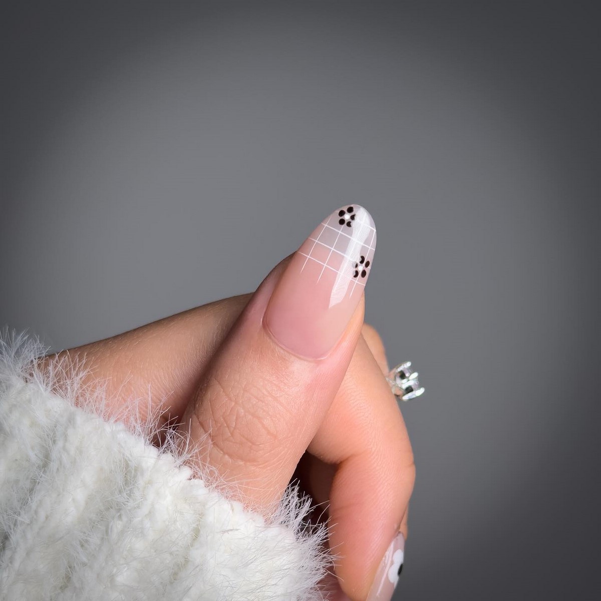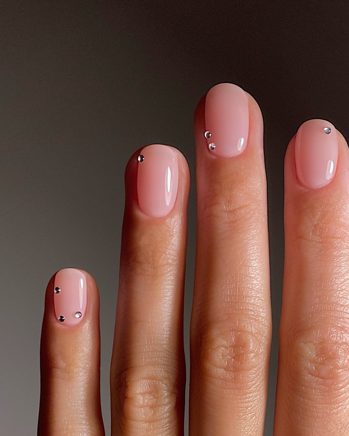 Мінімалістичні крапки біля кутикули на напівпрозорому тлі стали справжнім фаворитом для коротких нігтів. Такий дизайн візуально витягує нігтьову пластину і виглядає дуже акуратно. Колір крапок може бути молочним, сріблястим або нюдовим, підтримуючи загальну спокійну естетику.