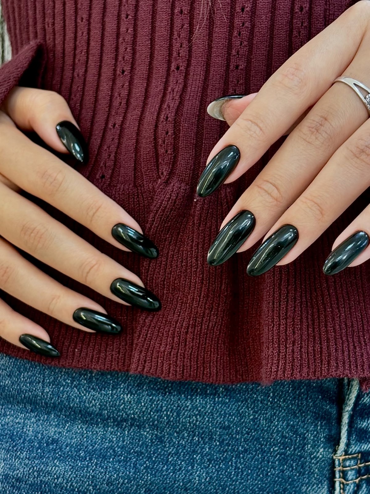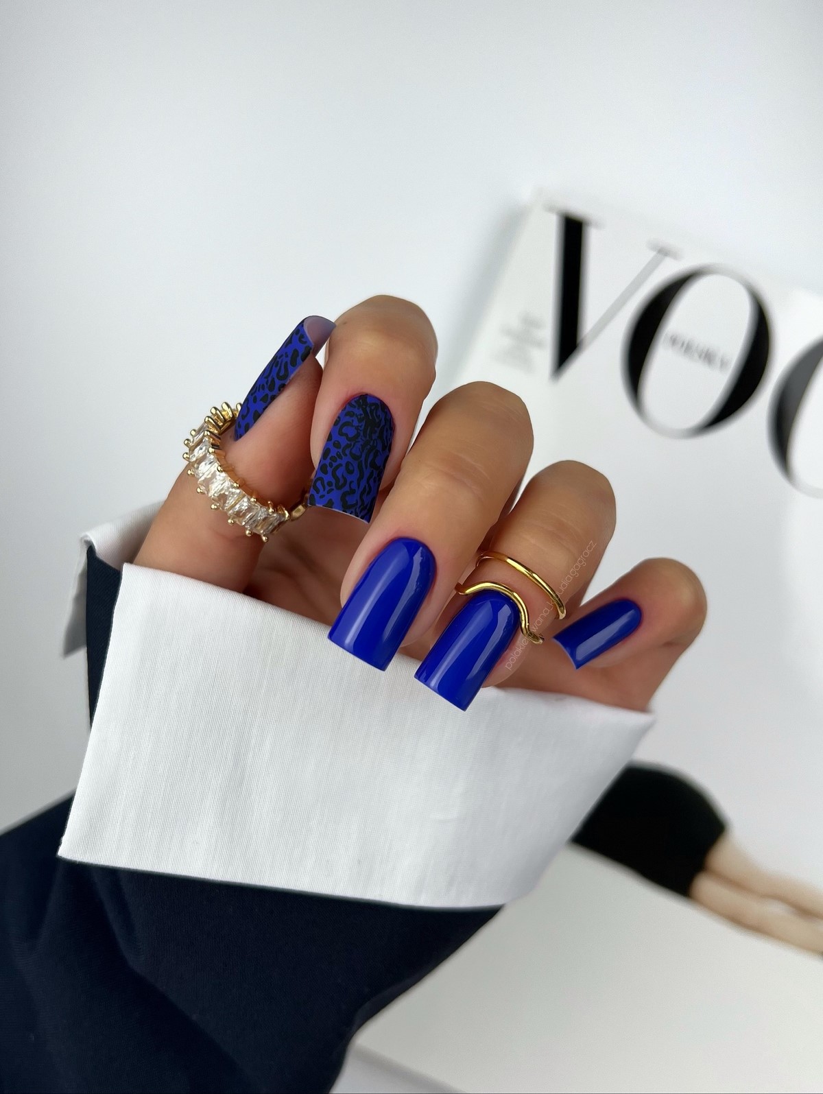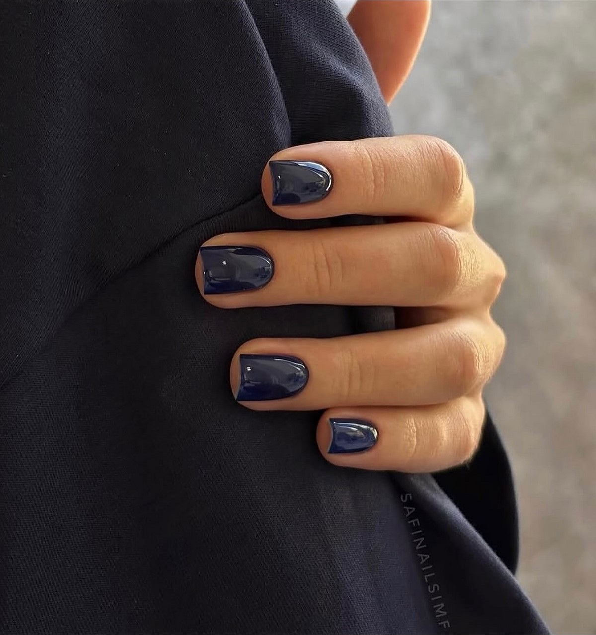 Глибокий синій залишається одним із найголовніших зимових відтінків, адже він поєднує в собі елегантність, спокій і виразність. У 2025-2026 цей колір отримує особливу популярність завдяки своєму «нічному» характеру: він нагадує зимове небо, оксамитові тіні або приглушене свічкове світло. Глибокий синій чудово виглядає на коротких нігтях та ідеально підходить для глянцевих, сатинових або магнітних фінішів. Він легко поєднується з мінімалістичними срібними деталями, мікро-гліттером або акцентом одного нігтя в металіку.