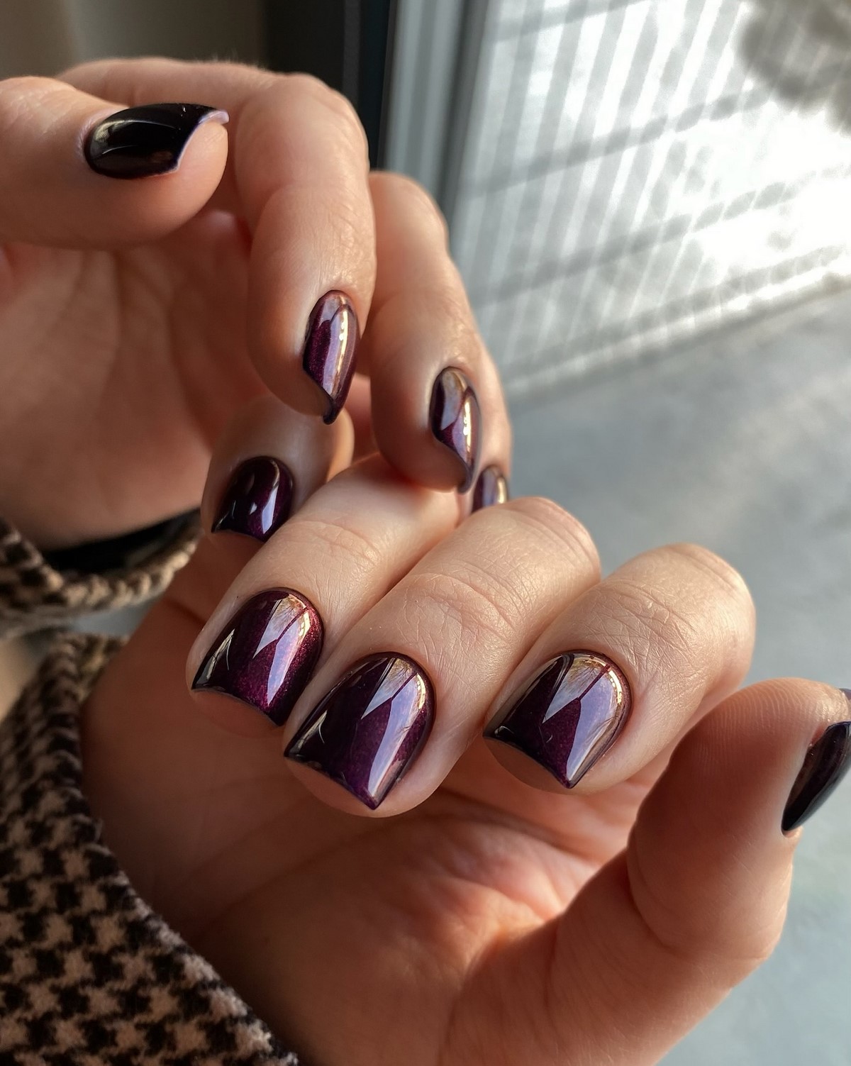 Сливовий відтінок повертається на модний подіум як один із найчуттєвіших тонів зимового сезону. Він поєднує в собі фіолетові, винні та ягідні ноти, створюючи багатогранний ефект. Сливовий ідеально підходить для тих, хто хоче надати образу глибини, жіночності та загадковості. У 2025-2026 він популярний у глянцевому виконанні, але не менш ефектно виглядає в матовій або «оксамитовій» текстурі. Сливовий чудово комбінується з флеш-топами, чорними деталями або срібними акцентами.