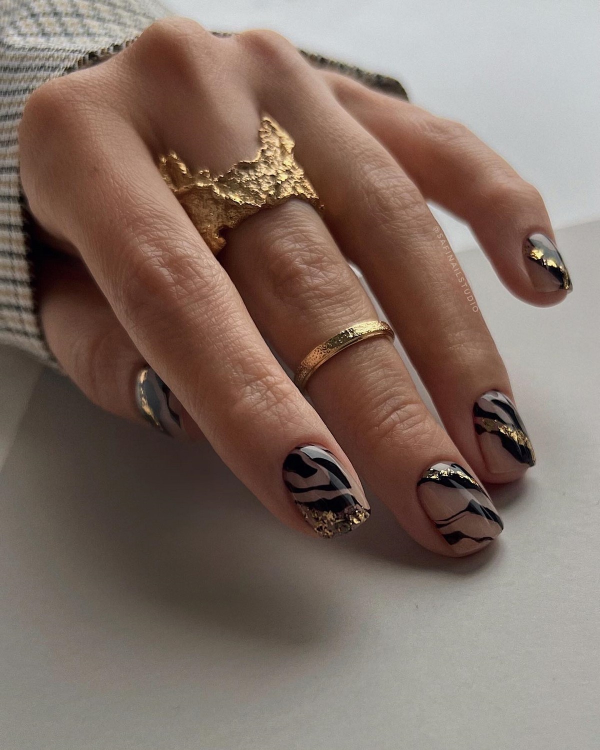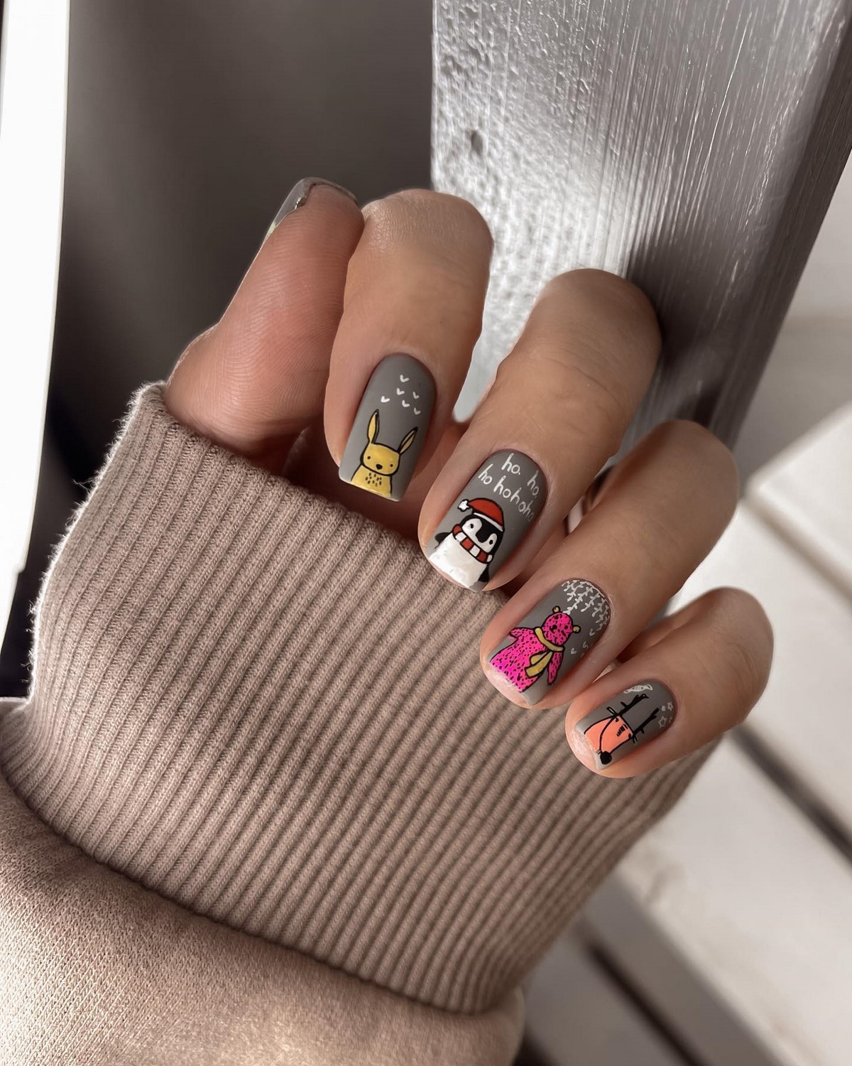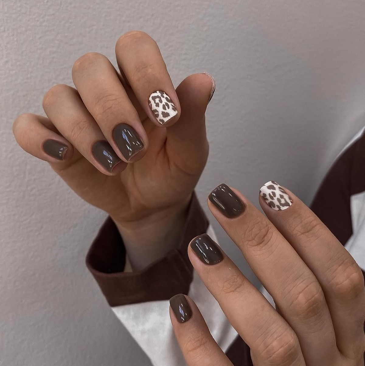Зебра, леопард, коров’ячий або тигровий візерунок — нейл-дизайн з тваринними мотивами знову на піку. Взимку вони виглядають особливо ефектно, якщо поєднувати їх з приглушеними тонами: сірим, білим, пудровим або кавовим.