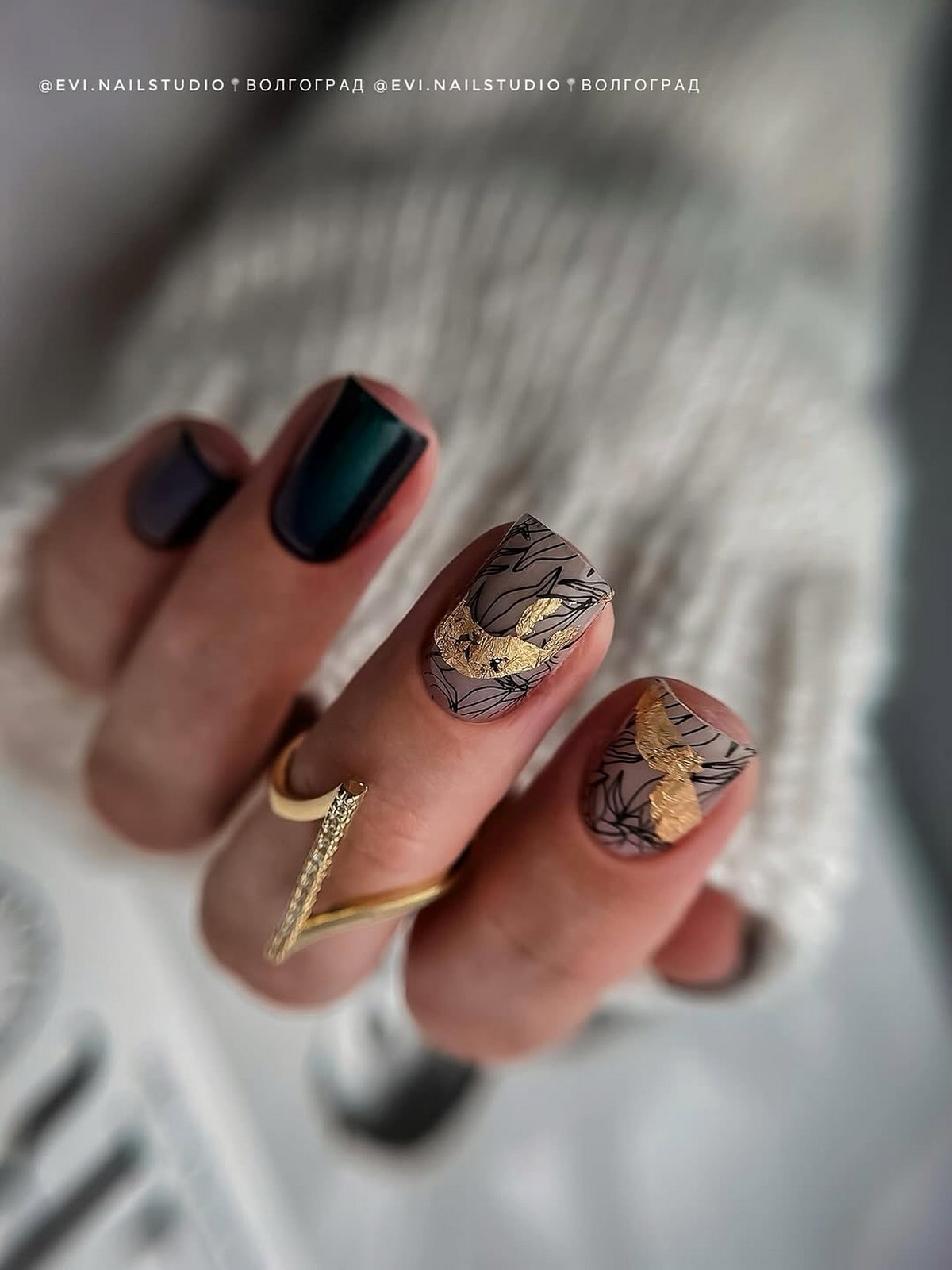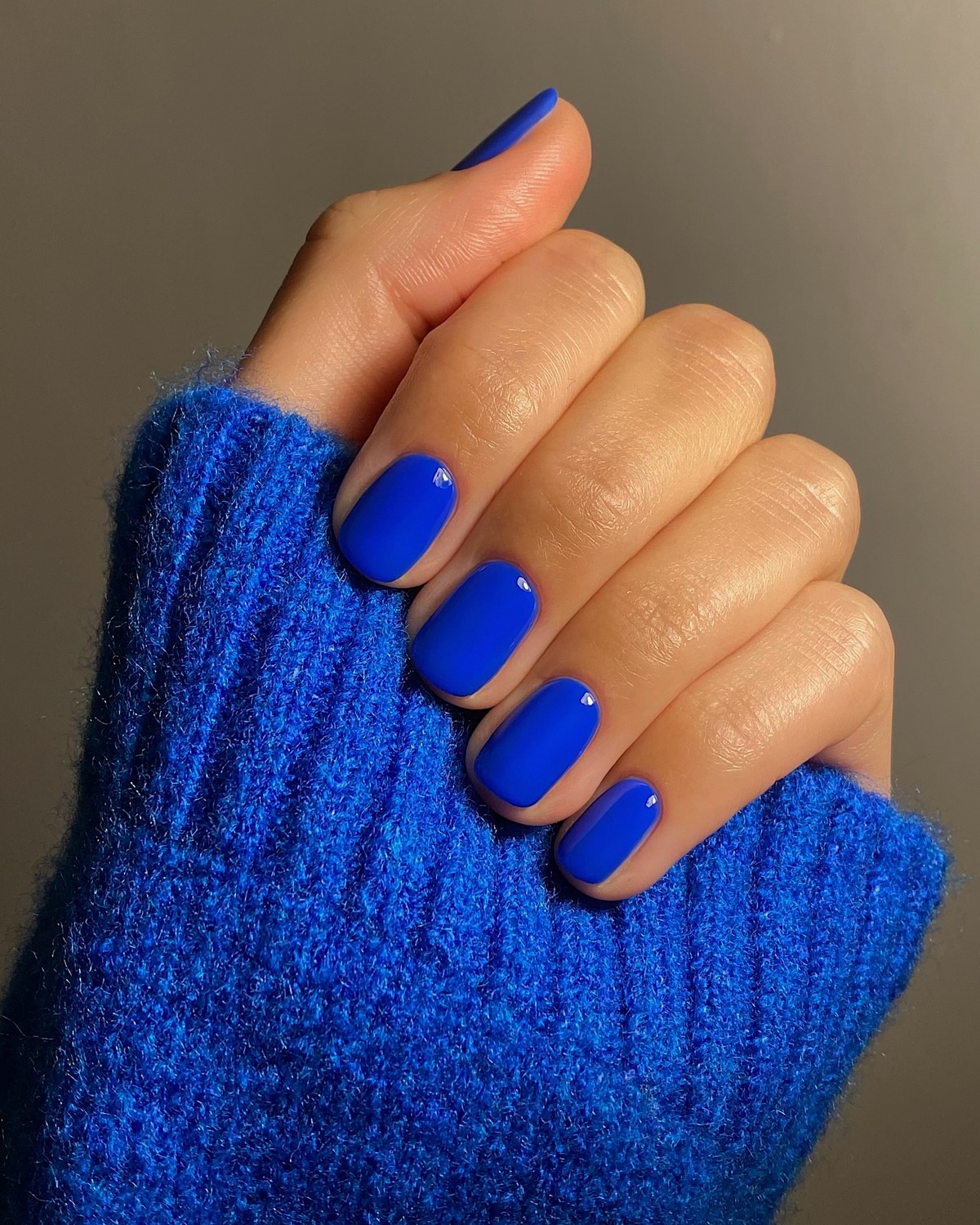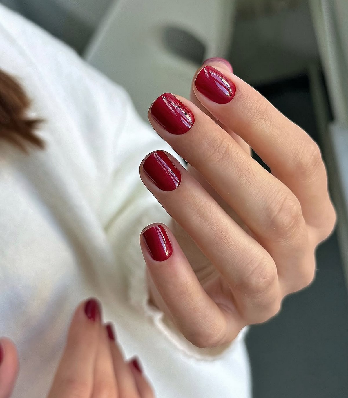 Глибокі тони, такі як бордо, сапфіровий, смарагдовий або темно-сливовий, стають символом зимової елегантності. Вони візуально подовжують нігтьову пластину, а в поєднанні з матовим топом надають образу витонченості.