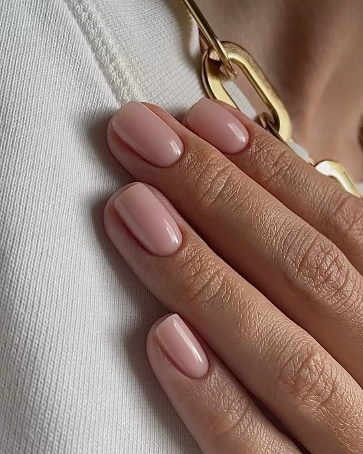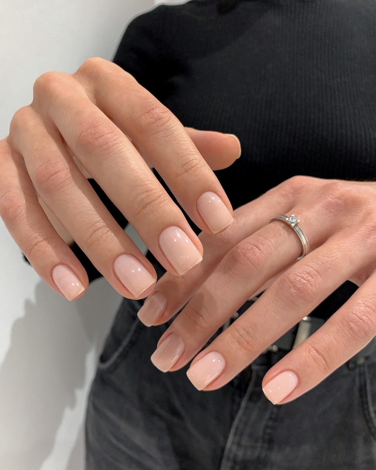 Бежевий манікюр — абсолютний must-have сезону. Він підкреслює чистоту форми, робить руки доглянутими і універсально підходить під будь-яке вбрання. Варіанти: молочний беж, карамель, світлий тауп, а також нюд із золотистим шиммером.