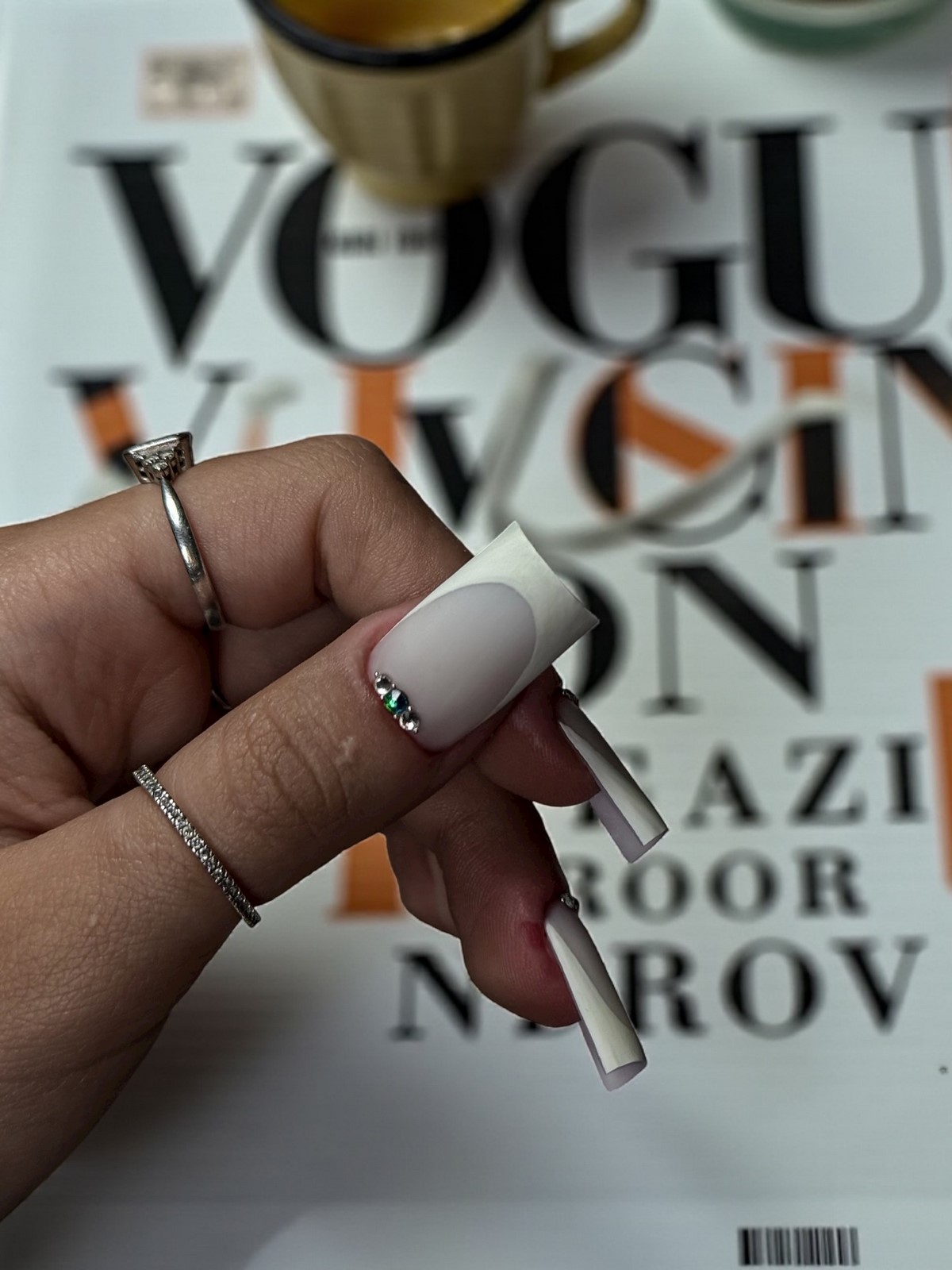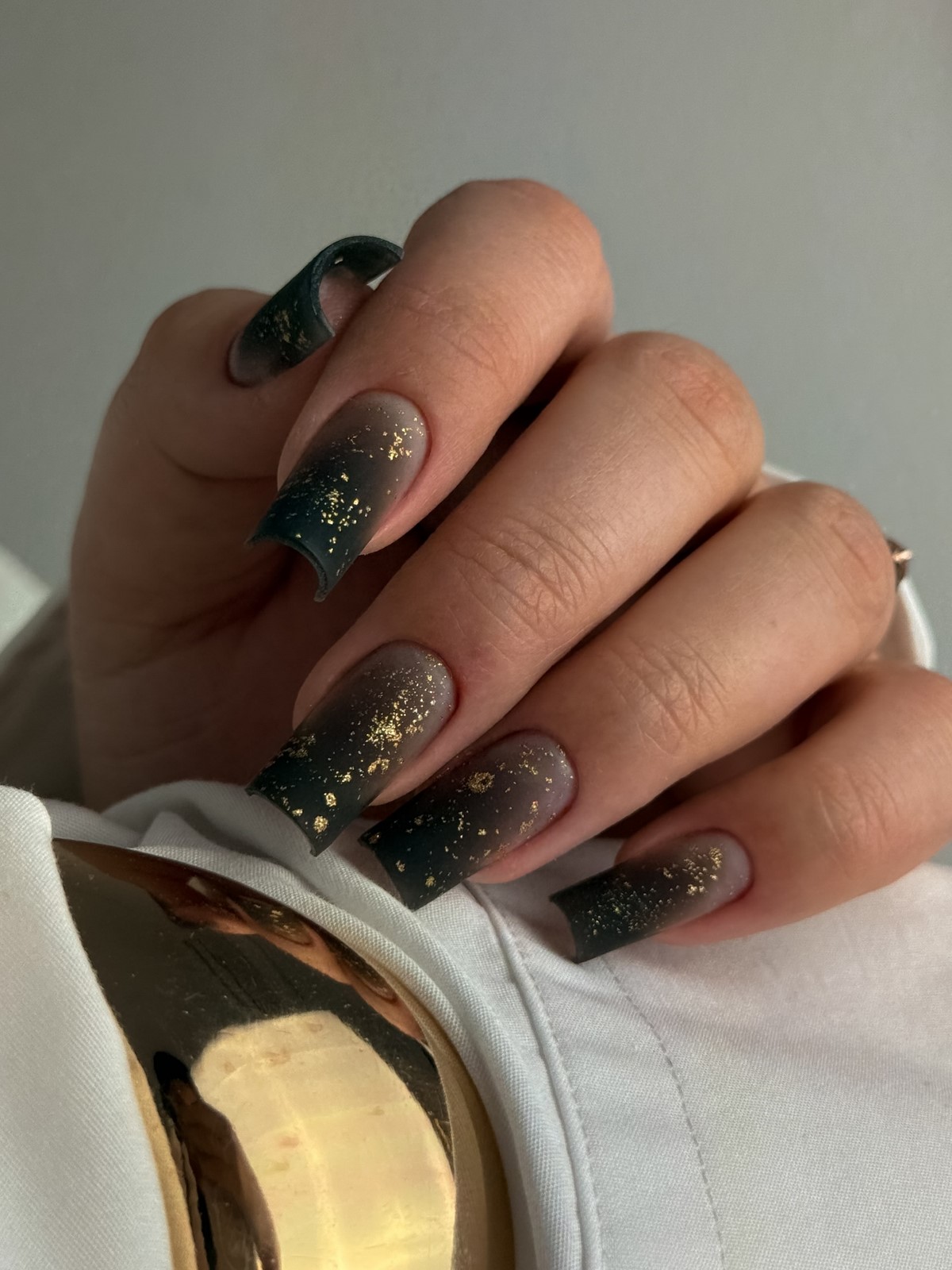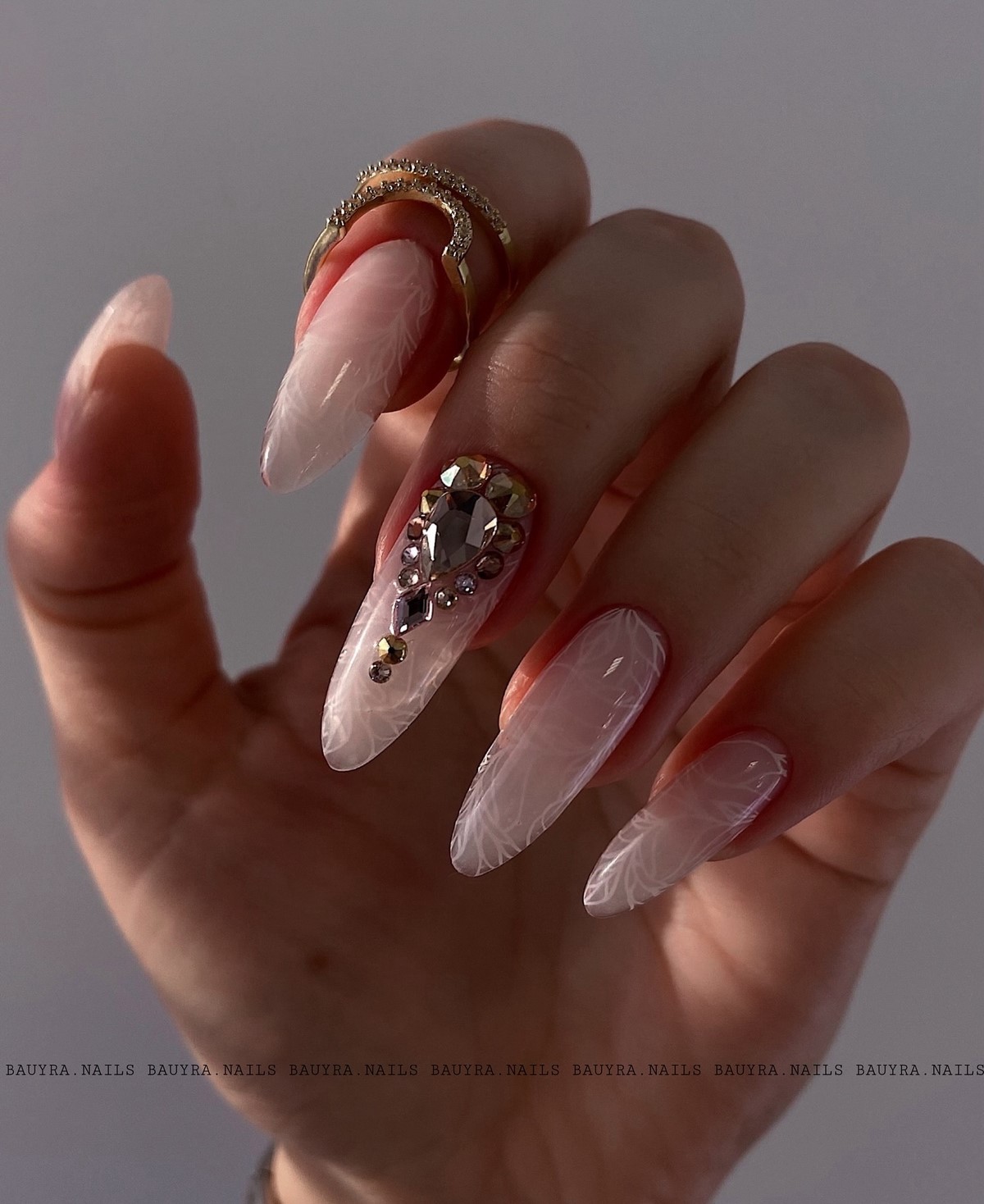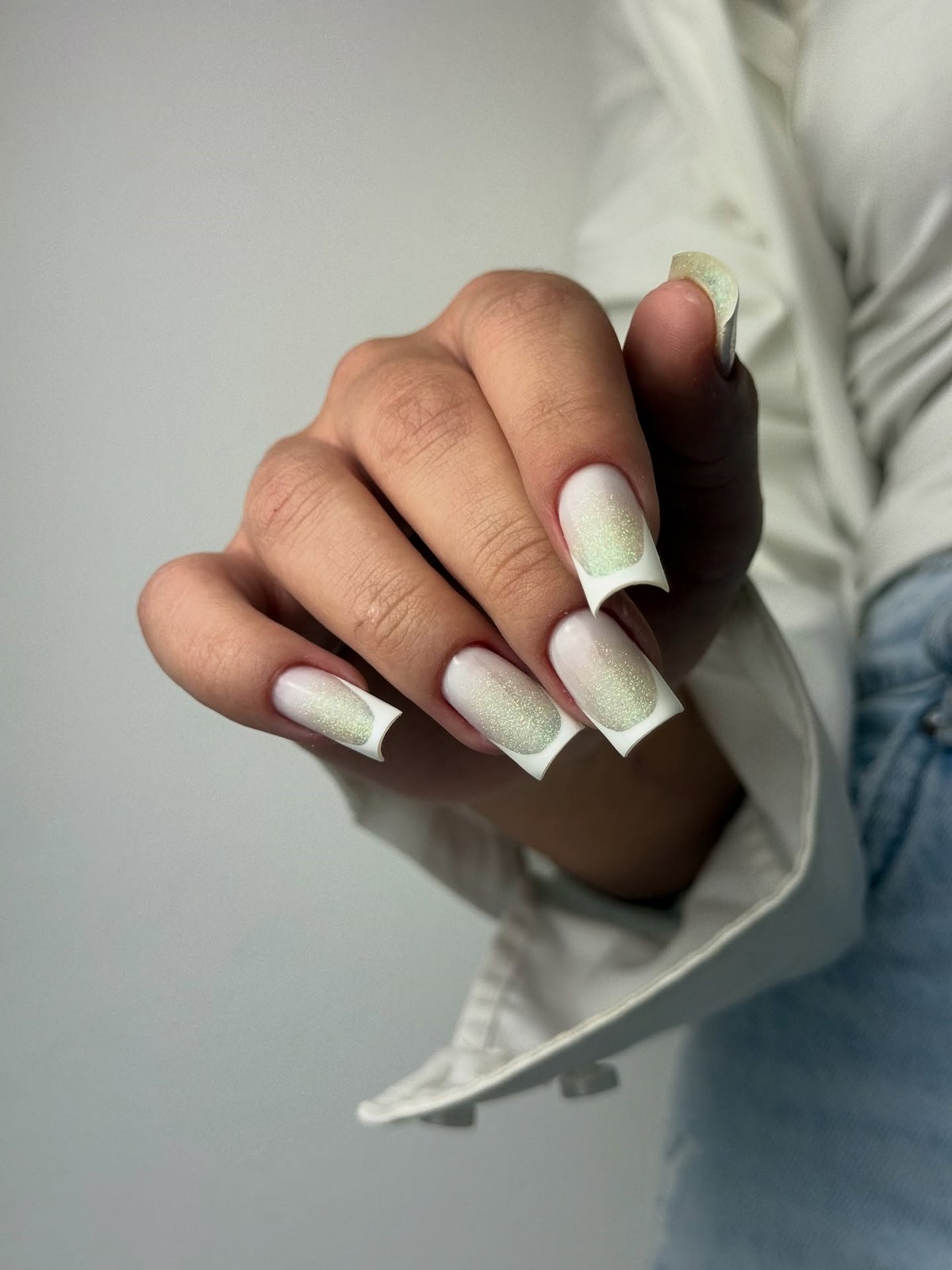 «Аура» — це м’який перехід кольору від центру нігтя до країв, що створює ефект світіння. У тренді — поєднання рожевого і білого, сірого і блакитного, а також теплого персика з кремовим. Цей манікюр виглядає ніжно і жіночно, ніби підсвічуючи нігті зсередини. Він ідеально підходить для зимових весіль, вечірок і повсякденного стилю.