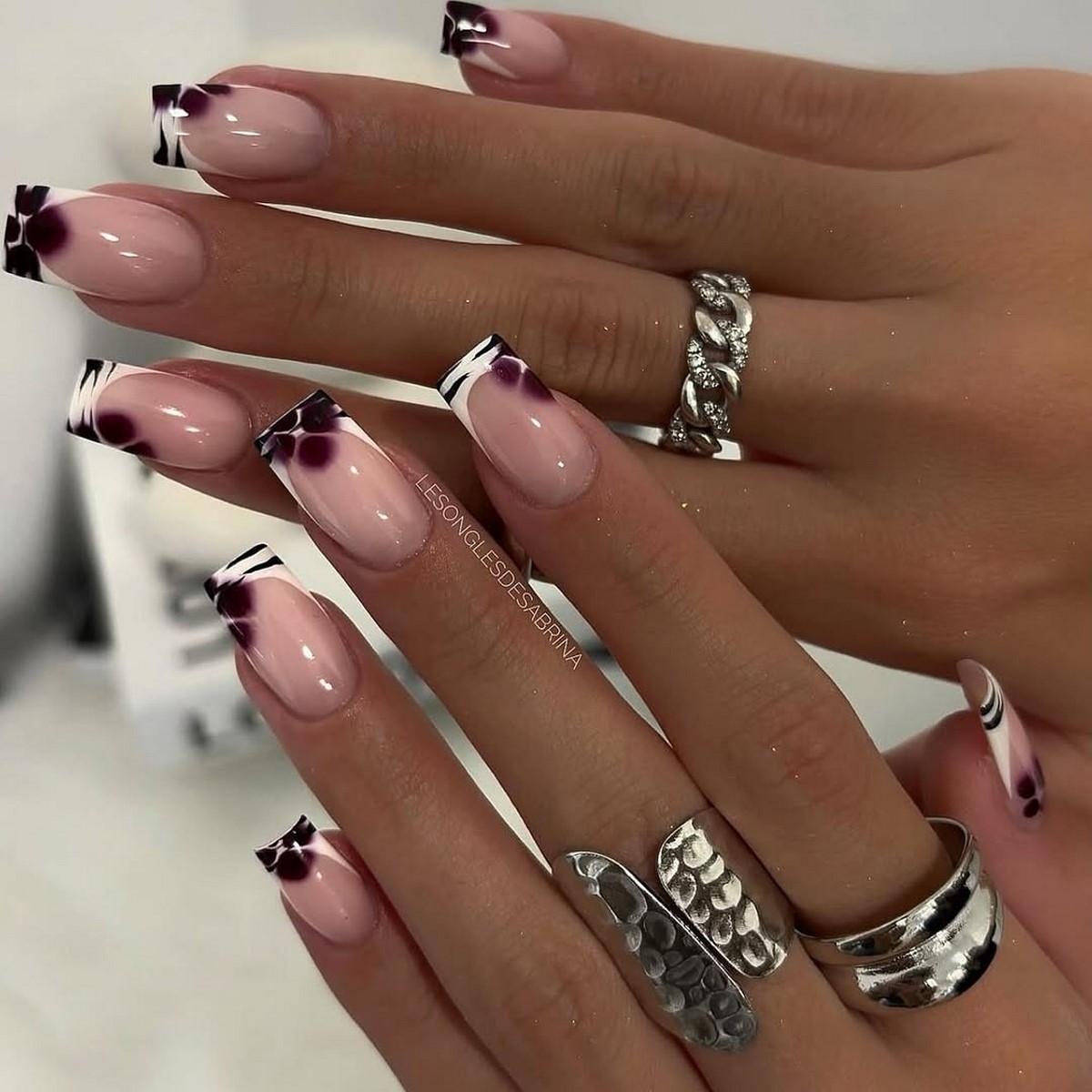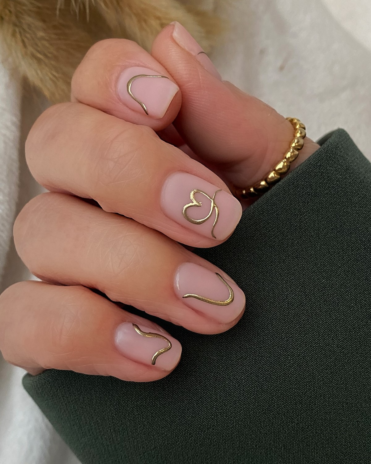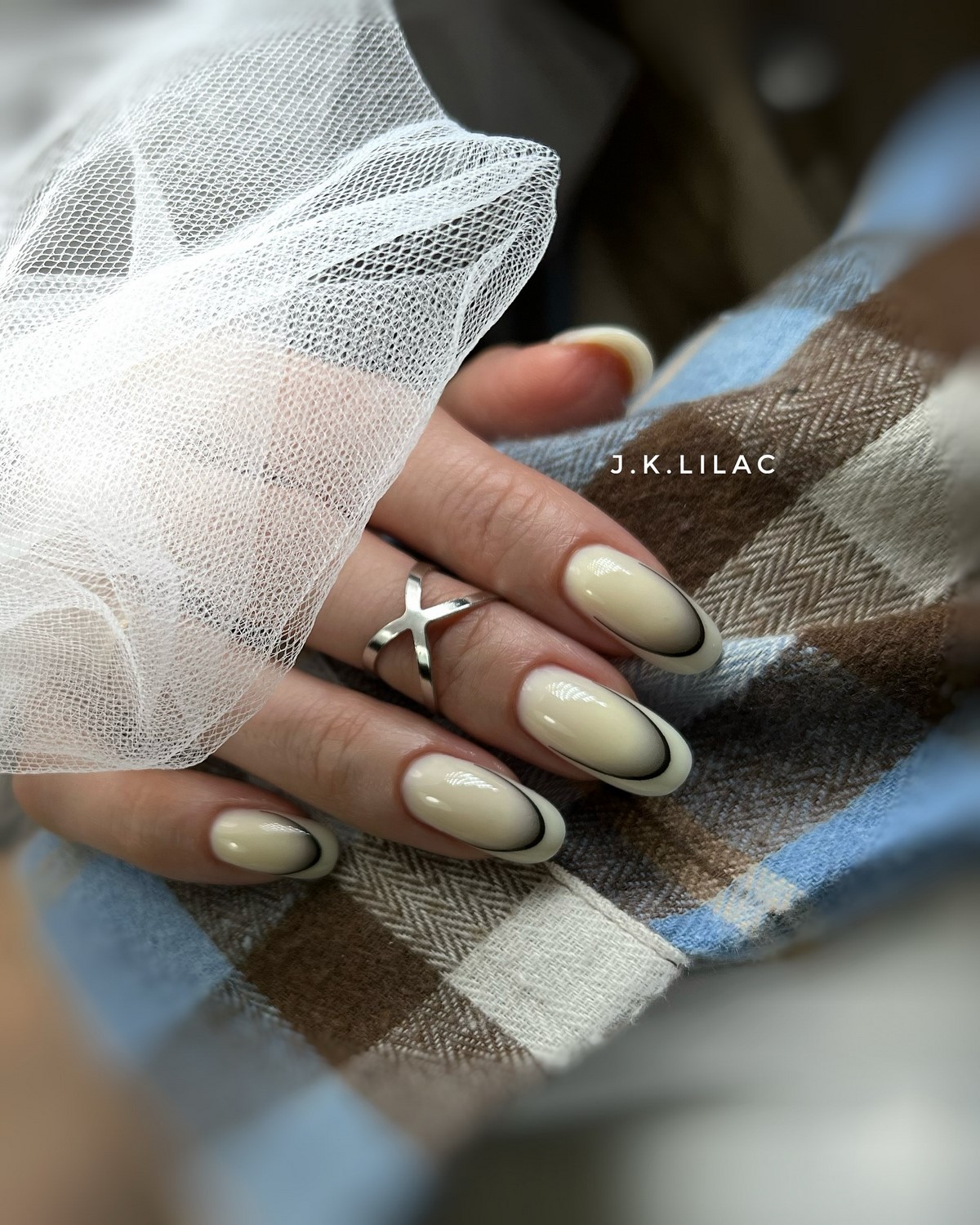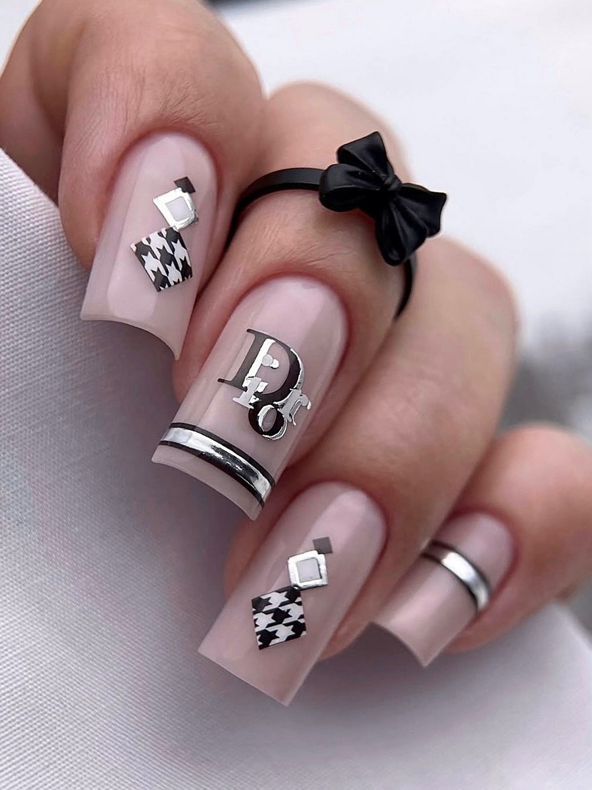 Грайливий горошок на нюдовій базі привносить нотку ретро-шарму в сучасний манікюр. Крапки можуть бути виконані в контрастних відтінках — білому, чорному, золотому — або в більш приглушеній гамі для створення ефекту тон-в-тон. Розташування горошку варіюється від хаотичного до впорядкованого, а розмір крапок — від мініатюрних до великих акцентних, що дозволяє створювати різноманітні композиції під будь-який стиль.