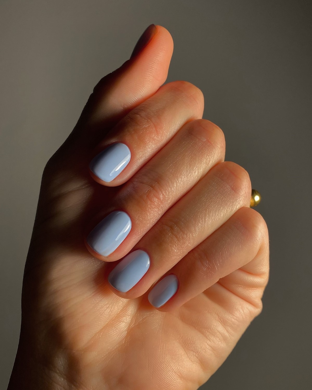 Такий манікюр додає образу свіжості і відмінно поєднується із зимово-весняним гардеробом. Блакитний колір особливо красиво виглядає на коротких і середніх нігтях.