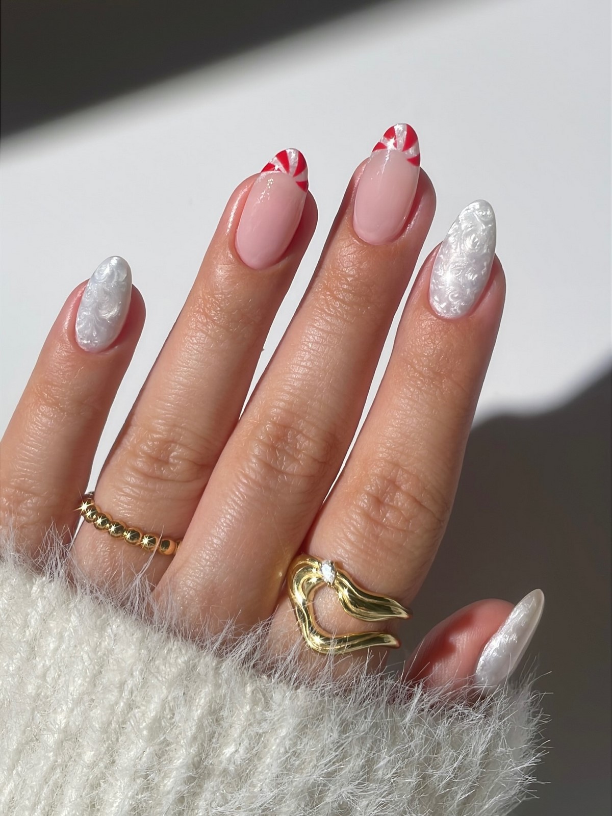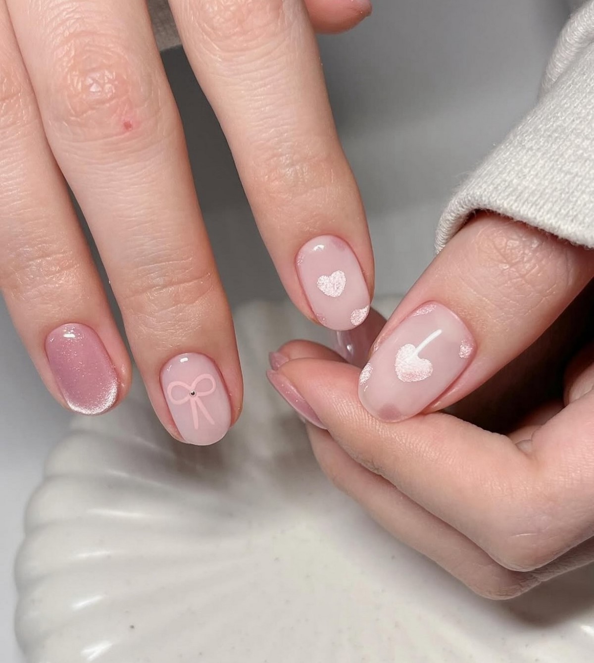 Такий манікюр особливо красиво виглядає при денному освітленні, підкреслюючи природну красу рук. Перламутрові відтінки ідеально вписуються в лютневу атмосферу спокою і затишку.