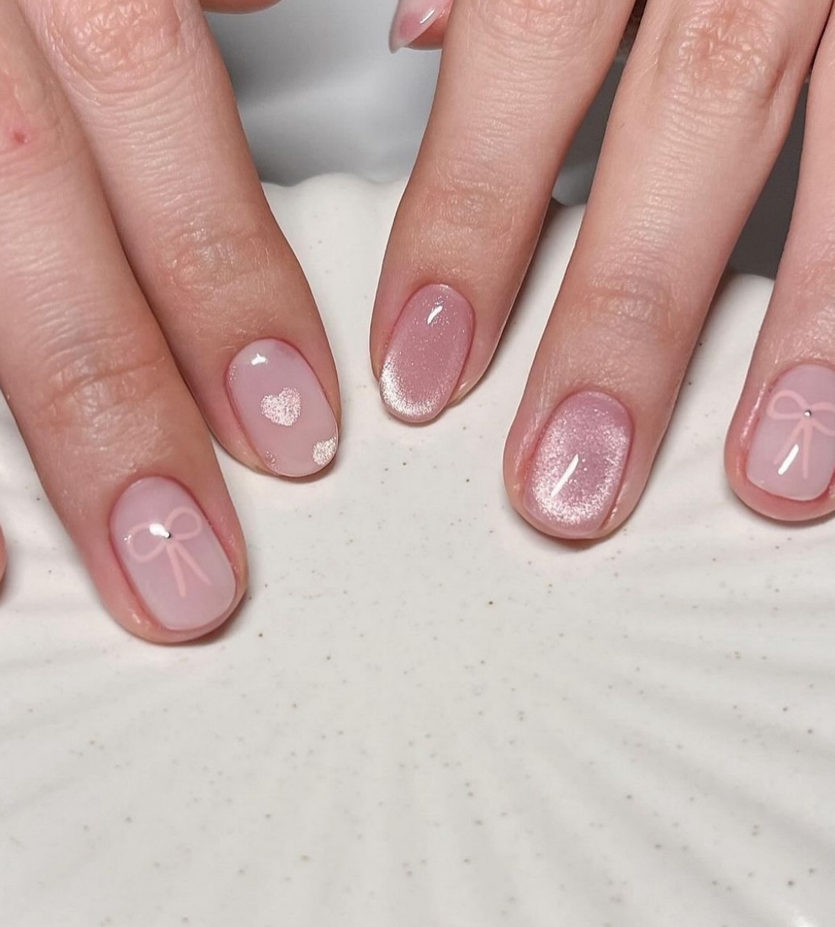 Перламутрові покриття повертаються в моду в оновленому форматі. У 2026 році вони виглядають більш стримано і сучасно. Відтінки варіюються від холодного молочного до м’якого рожевого з переливом.