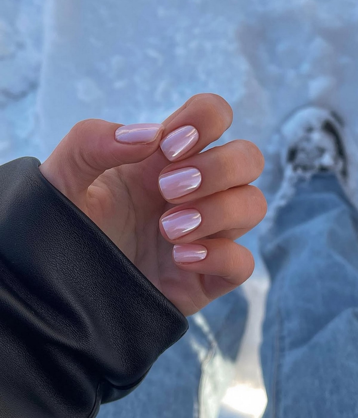 Перламутр ідеально підходить для зимового манікюру завдяки своїй здатності відбивати світло і створювати ефект свіжості. Такий дизайн добре виглядає на будь-якій довжині нігтів і підходить для різних вікових груп.