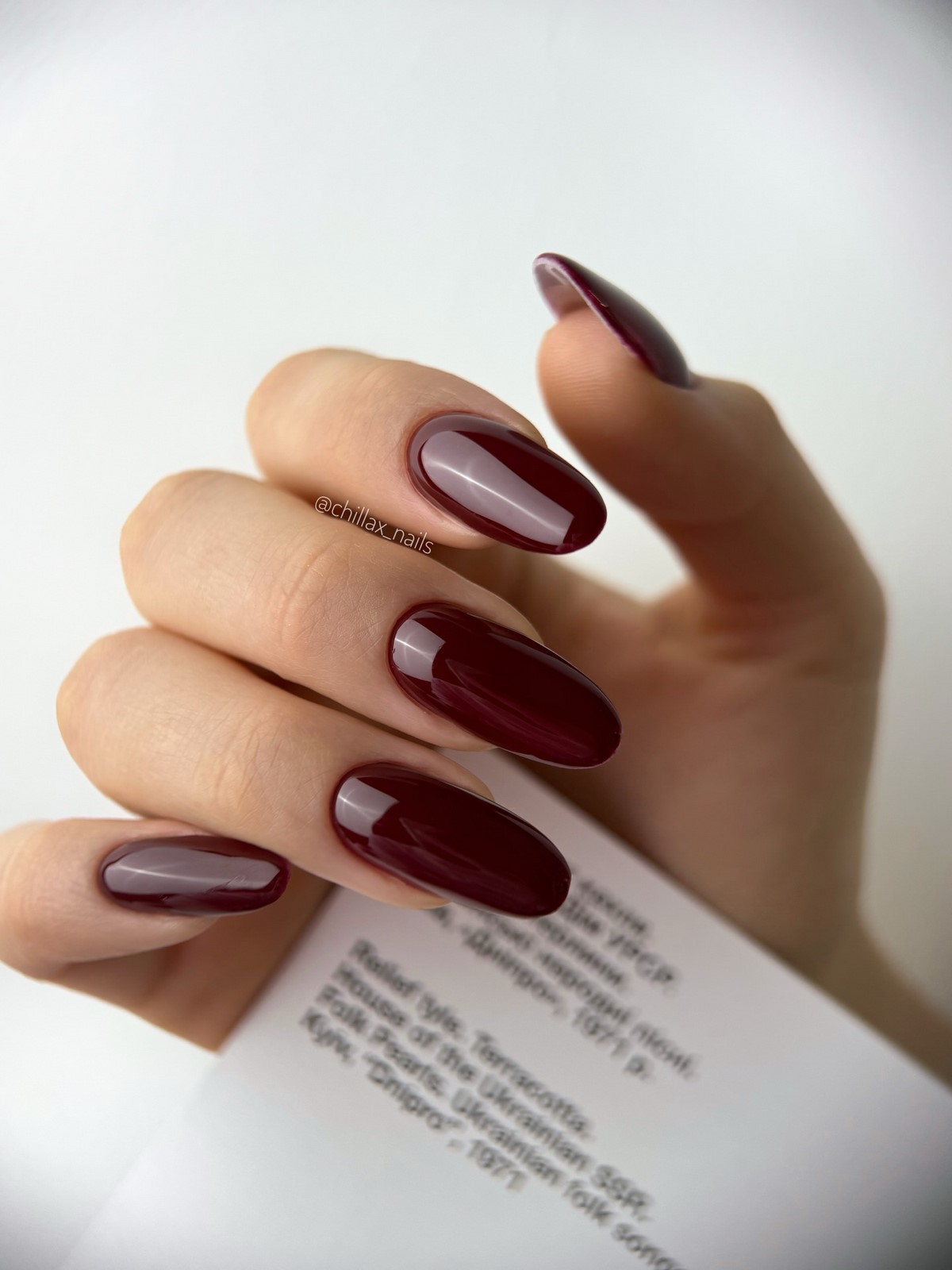 Бордовий колір взимку 2026 року стає символом елегантності. Він відмінно підходить для коротких і середньої довжини нігтів. У тренді як класичний глянець, так і оксамитові текстури.