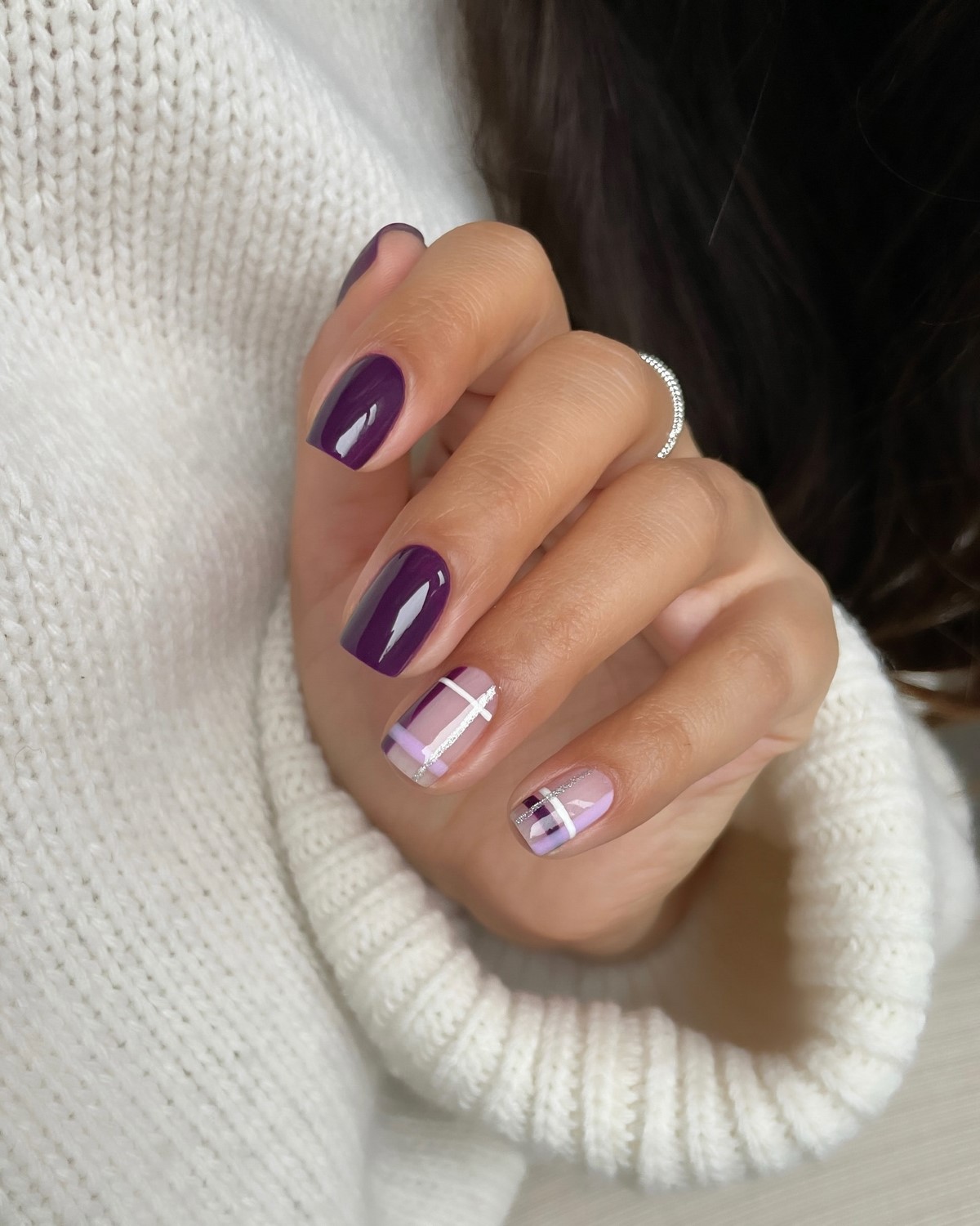 Клітинка манікюр взимку 2026 виглядає особливо актуально завдяки асоціаціям із затишком і теплом. У моді тонкі лінії, м’які контрасти і спокійні відтінки сірого, молочного і коричневого. Такий дизайн ідеально поєднується з вовняними текстурами в образі.