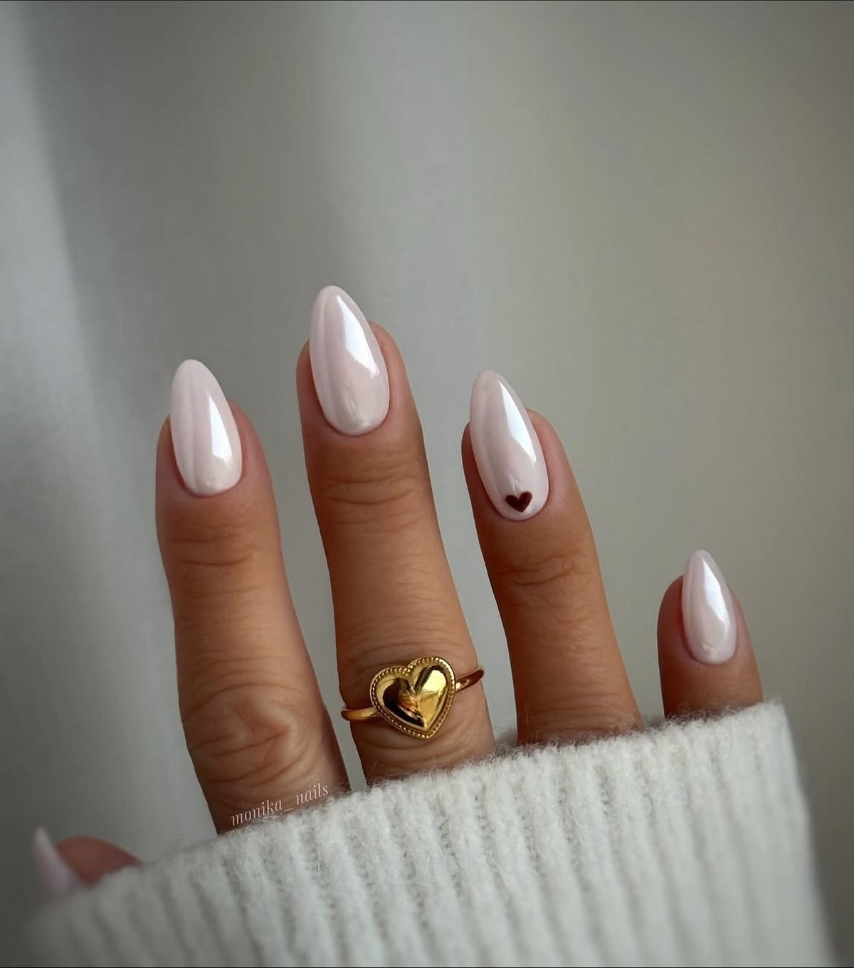 Особливо актуальні поодинокі сердечка на одному або двох нігтях. Вони створюють ефект продуманої деталі, а не нав’язливого декору.