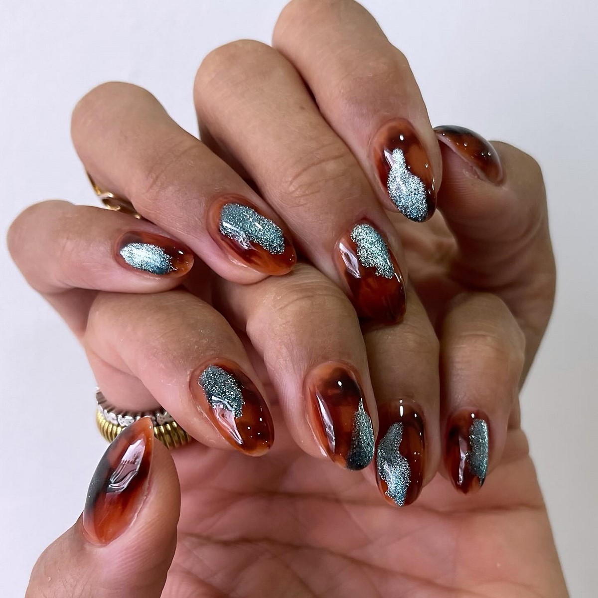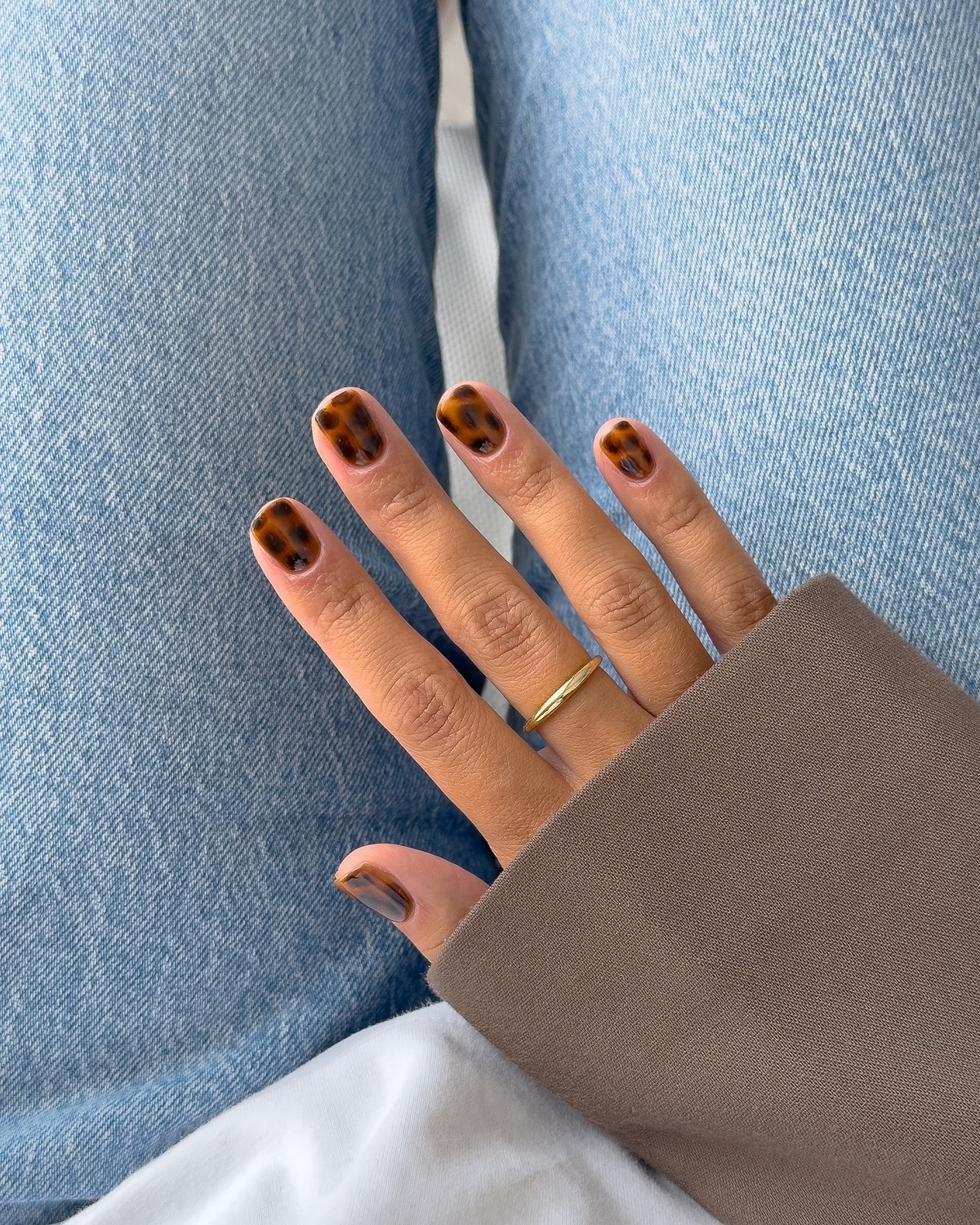 Черепашачий принт залишається актуальним і в зимовому сезоні 2026 року. У шоколадних відтінках він виглядає благородно і дорого. Такий дизайн часто вибирають для акцентних нігтів, поєднуючи його з однотонним покриттям.