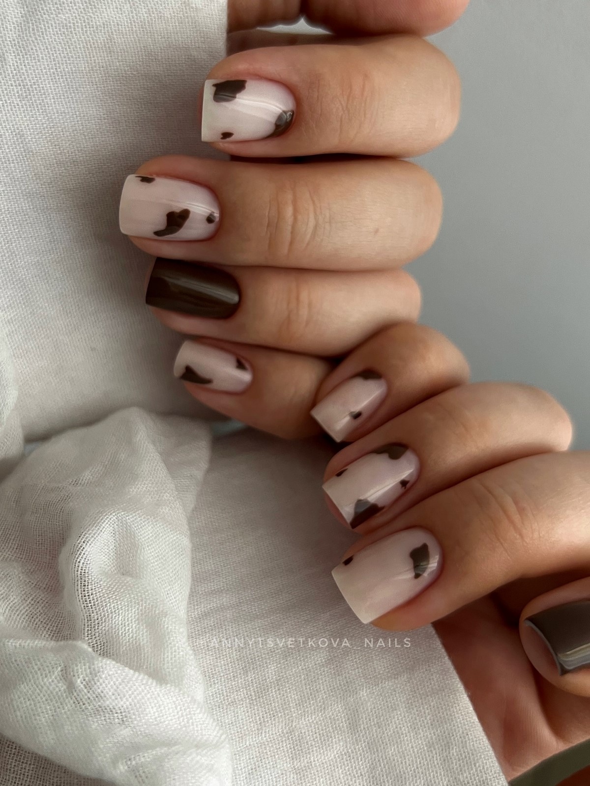 Шоколадний манікюр на квадратні нігті