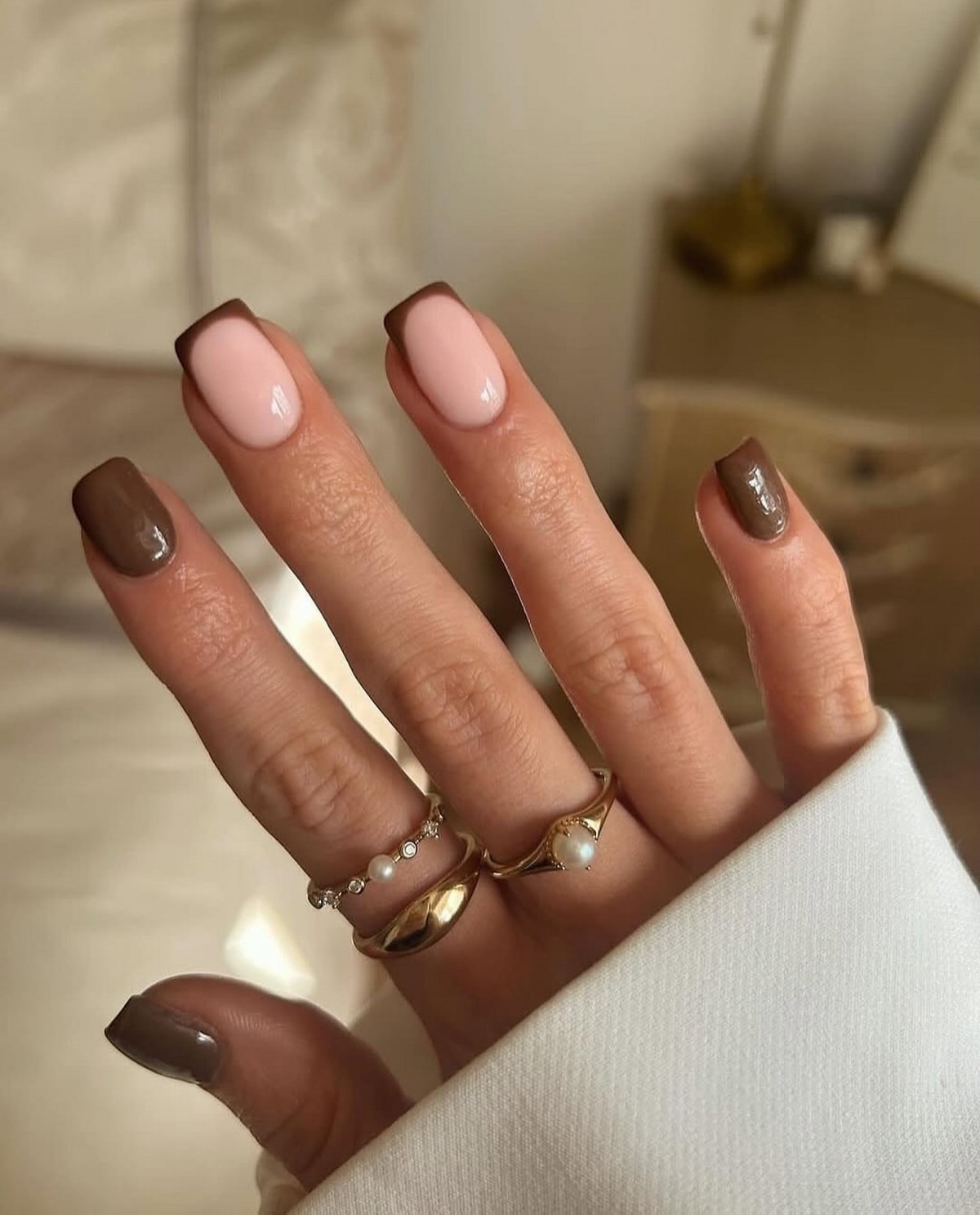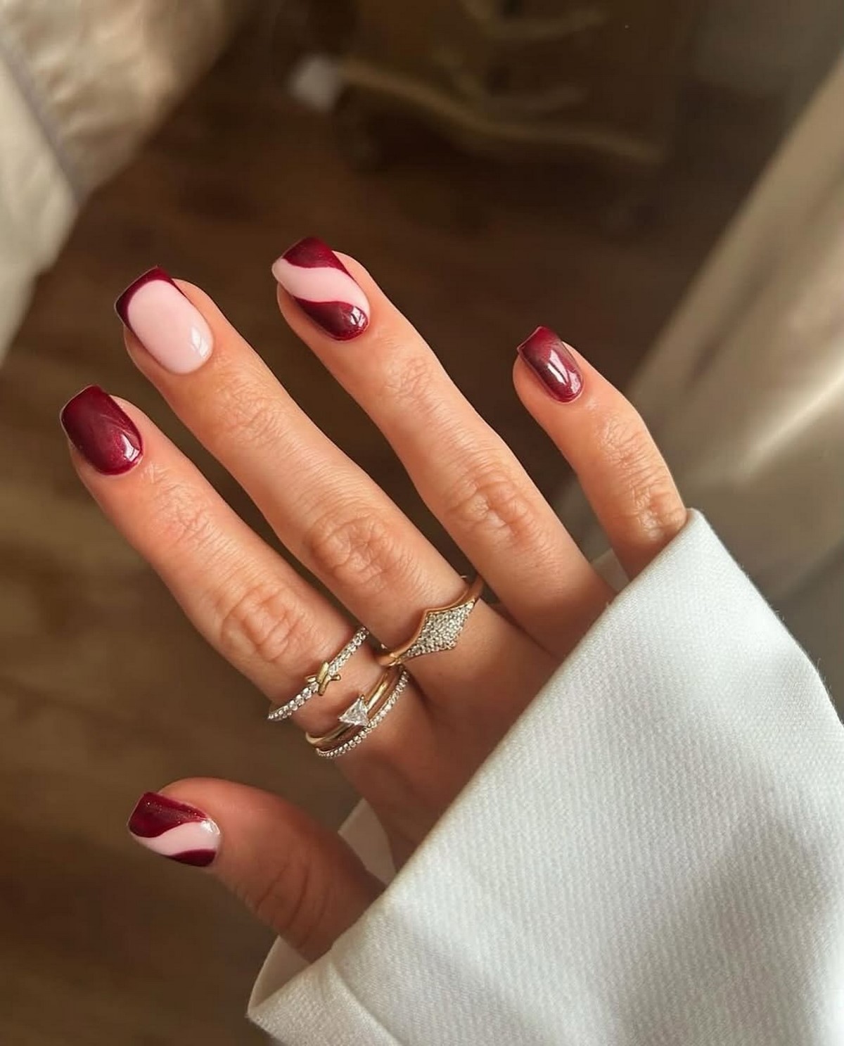 Нюдово-бордовий відтінок стає компромісом між нейтральністю і виразністю. Взимку 2026 року він виглядає спокійно, але при цьому додає образу тепла і глибини. Такий манікюр підходить тим, хто хоче відійти від класичного нюду, але не готовий до яскравих кольорів.