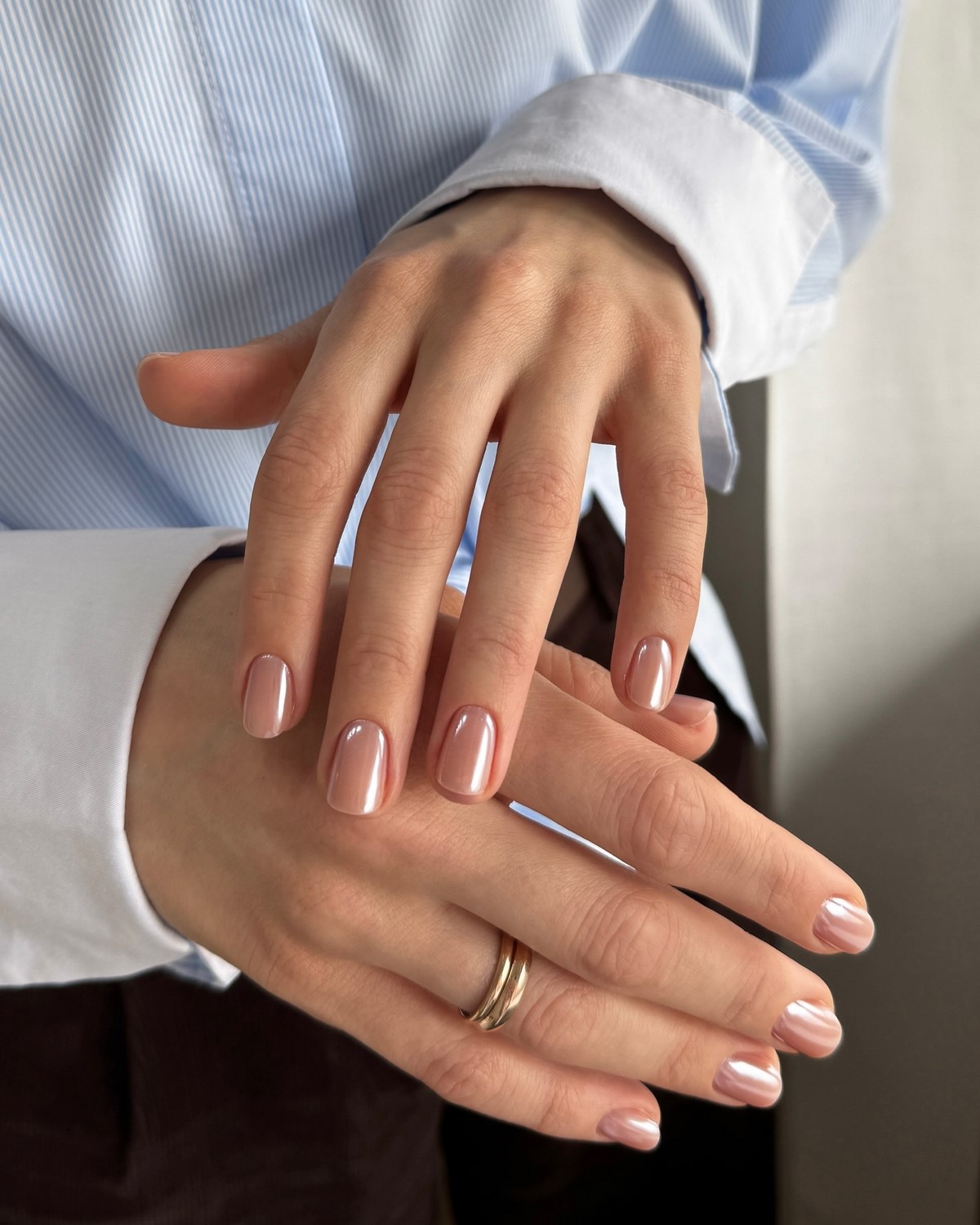 Такий манікюр підкреслює форму нігтів і акуратність рук, не прив’язуючись до конкретного стилю одягу. Він однаково добре виглядає з мінімалістичними прикрасами і більш виразними аксесуарами.