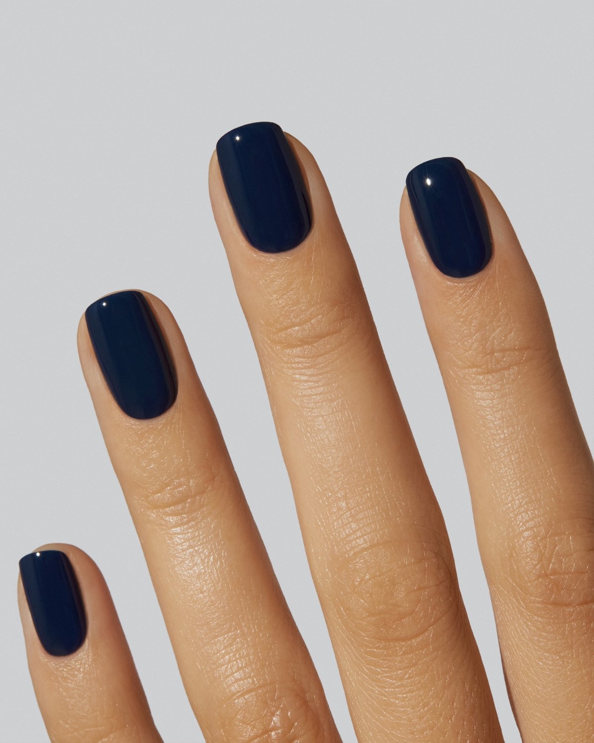 Темно-синій манікюр взимку 2026 року стає альтернативою чорному, зберігаючи строгість, але додаючи глибину і благородство. Цей відтінок виглядає спокійно, але при цьому насичено, особливо при глянцевому покритті. Він ідеально підходить для офісних образів і повсякденної класики.