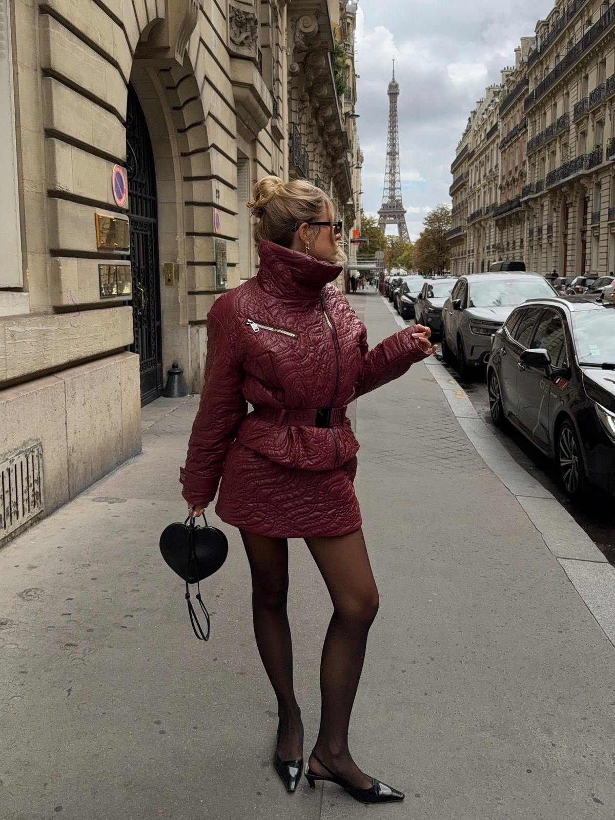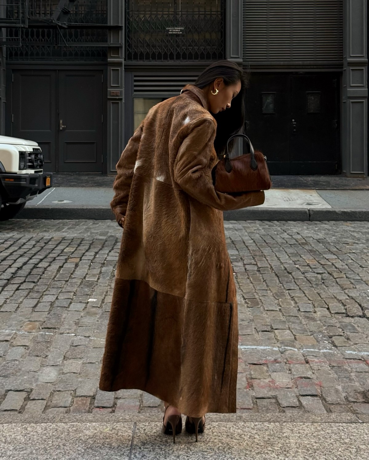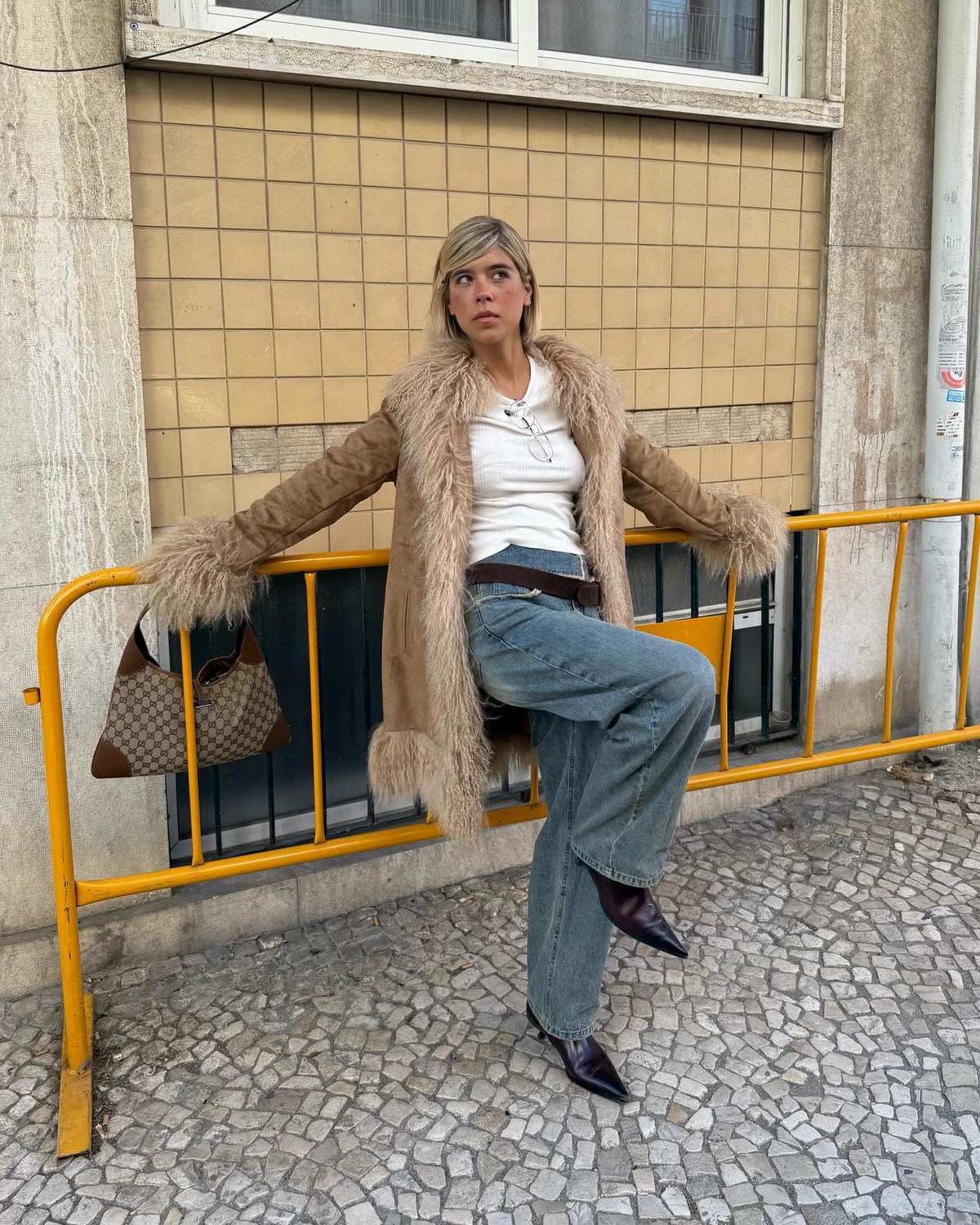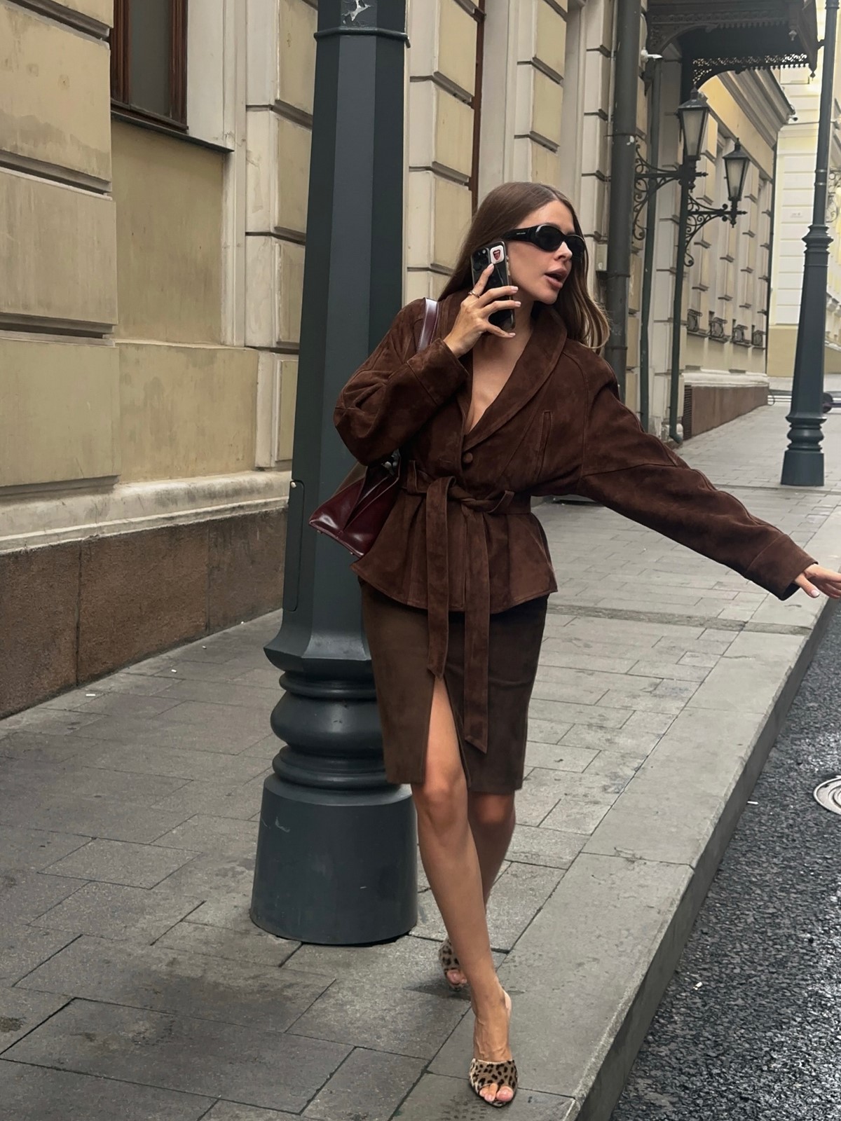 - Фактури: хутро, шкіра, оксамит, щільний трикотаж і денім. Контраст м’яких і грубих матеріалів в одному образі задає тон сезону.