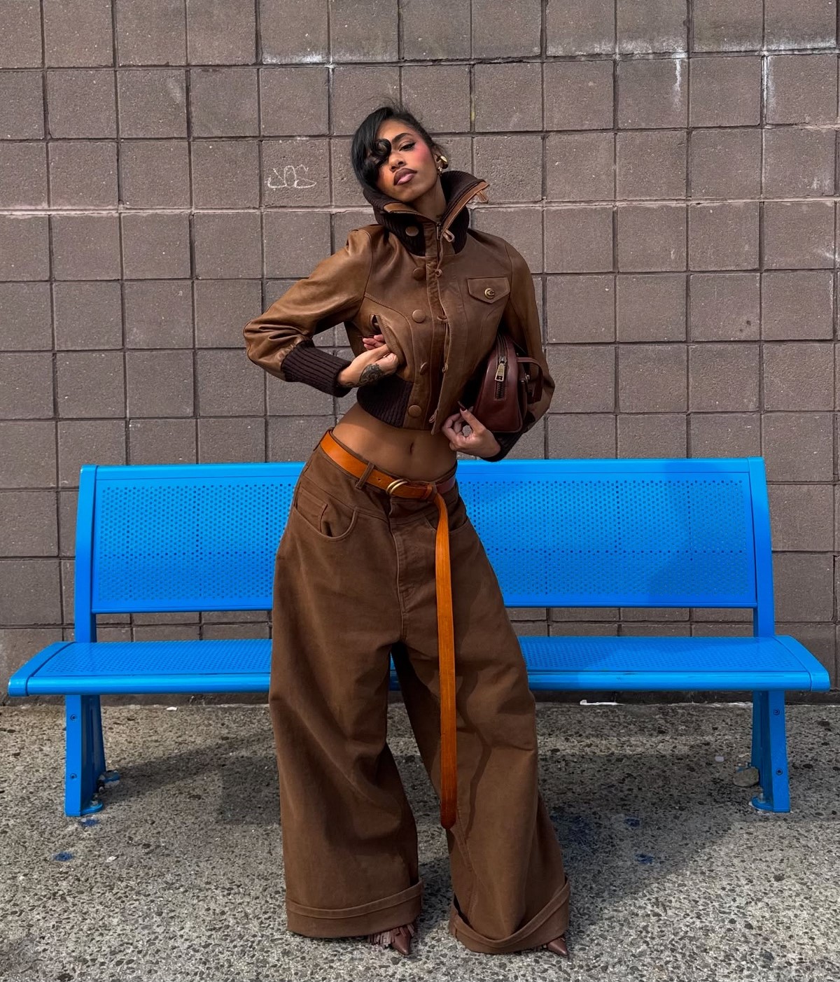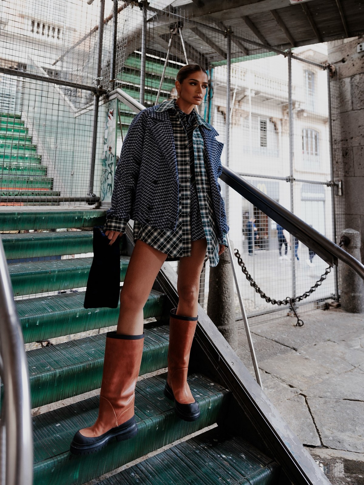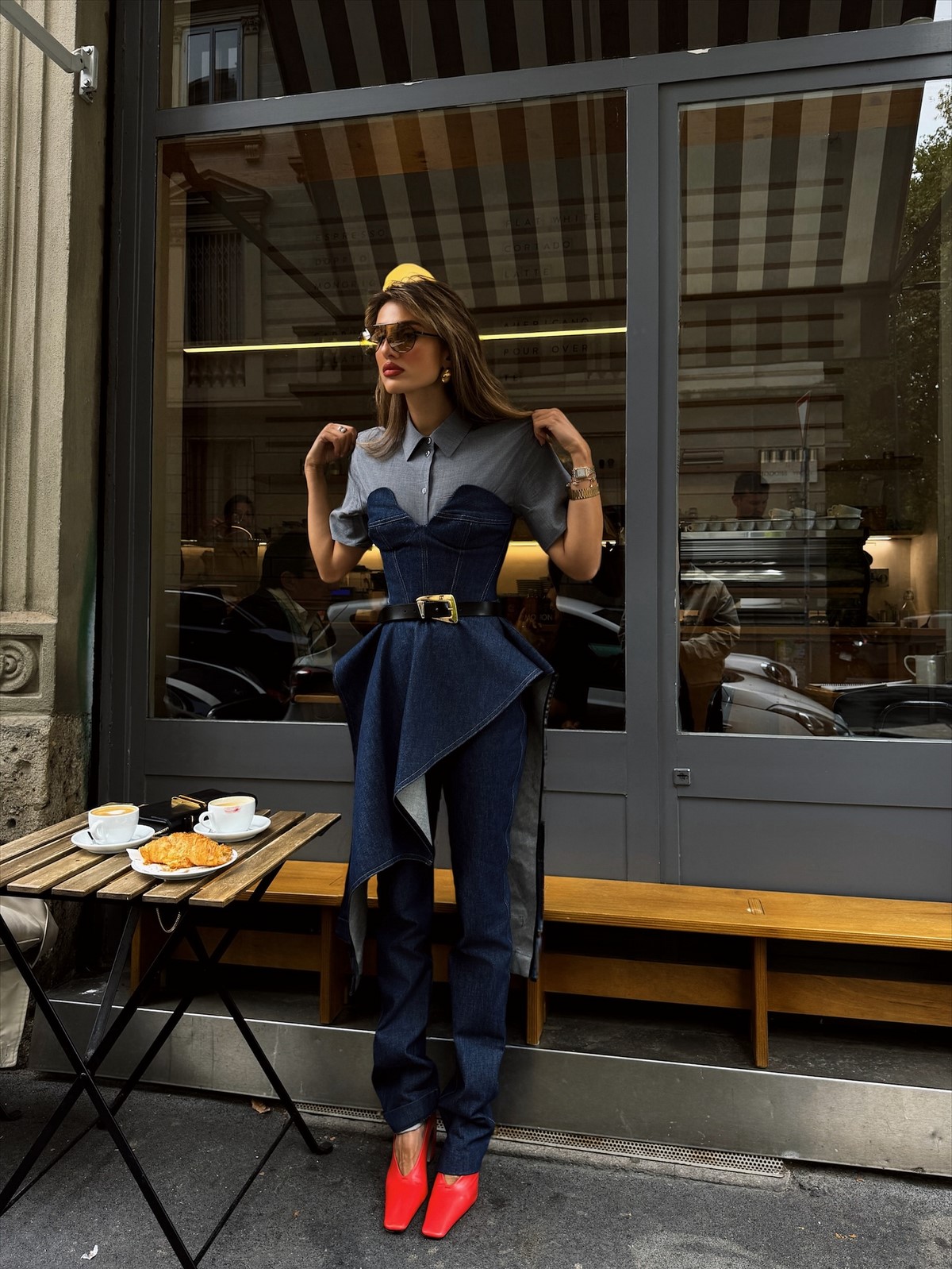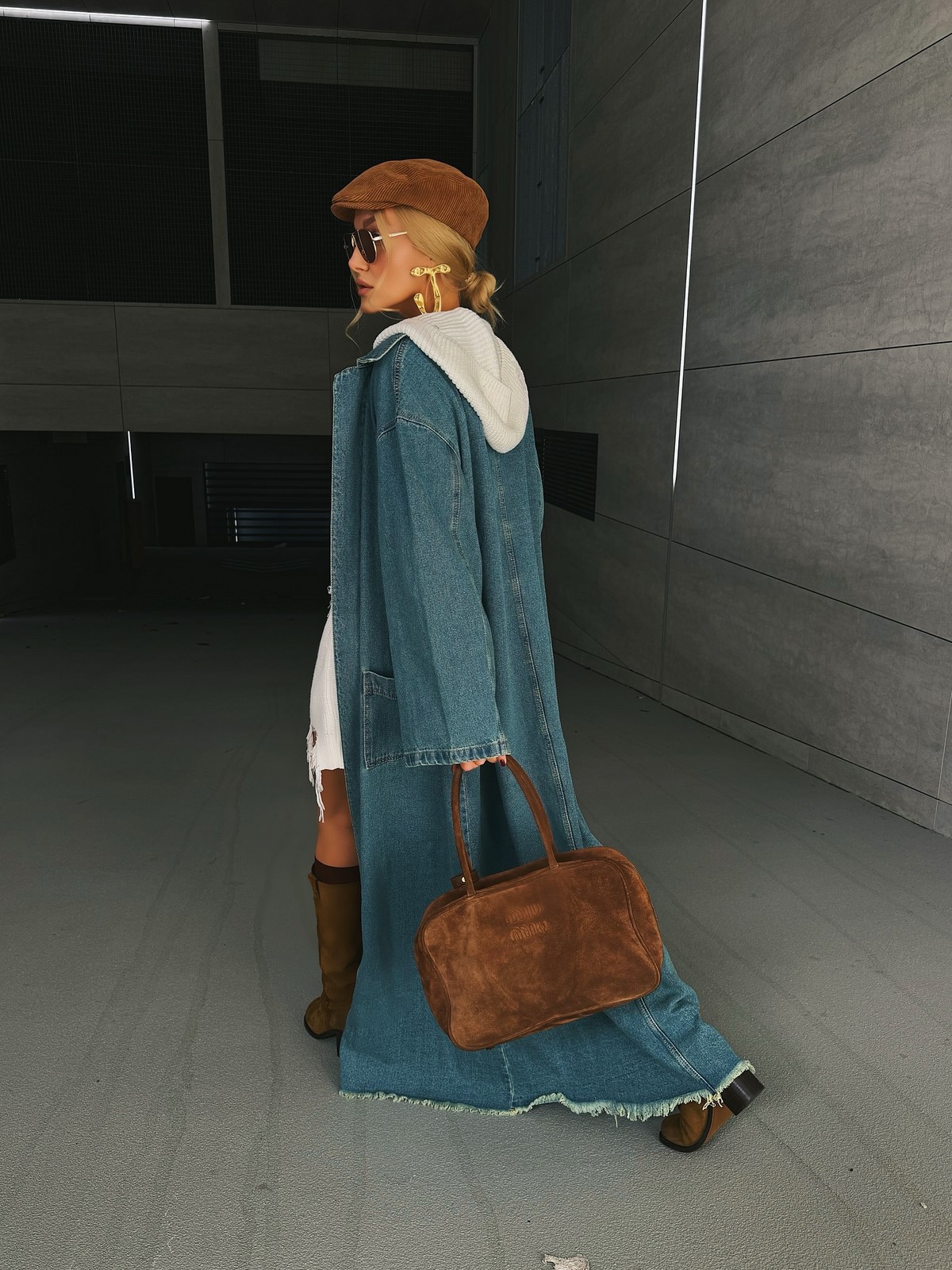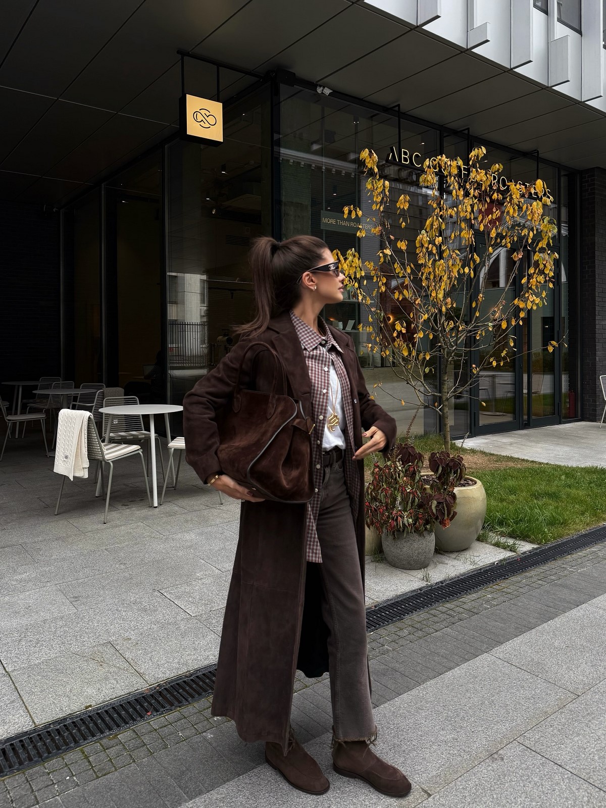 - Фактури: хутро, шкіра, оксамит, щільний трикотаж і денім. Контраст м’яких і грубих матеріалів в одному образі задає тон сезону.