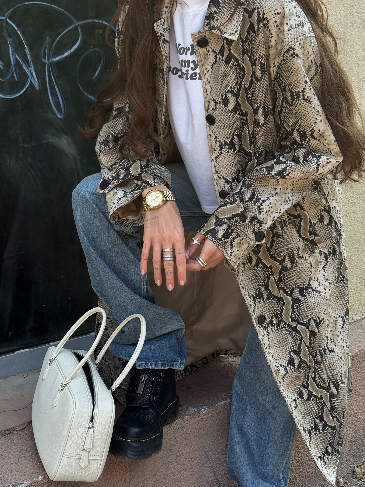 Анімалістичні візерунки залишаються фаворитами, але зміїний принт виходить на перший план. Він додає образу зухвалості і сексуальності, особливо в поєднанні зі шкірою і металізованими тканинами. Такий мотив доречний як в повсякденних луках (наприклад, на чоботях або сумках), так і в вечірніх образах.