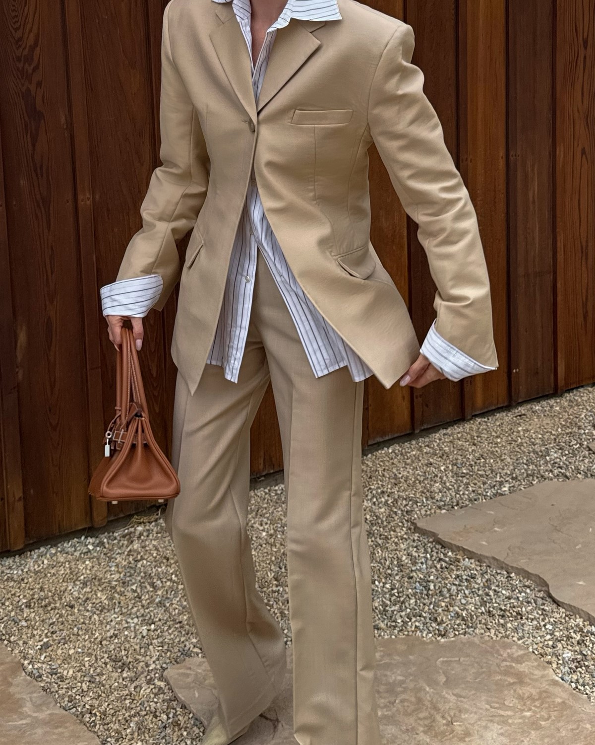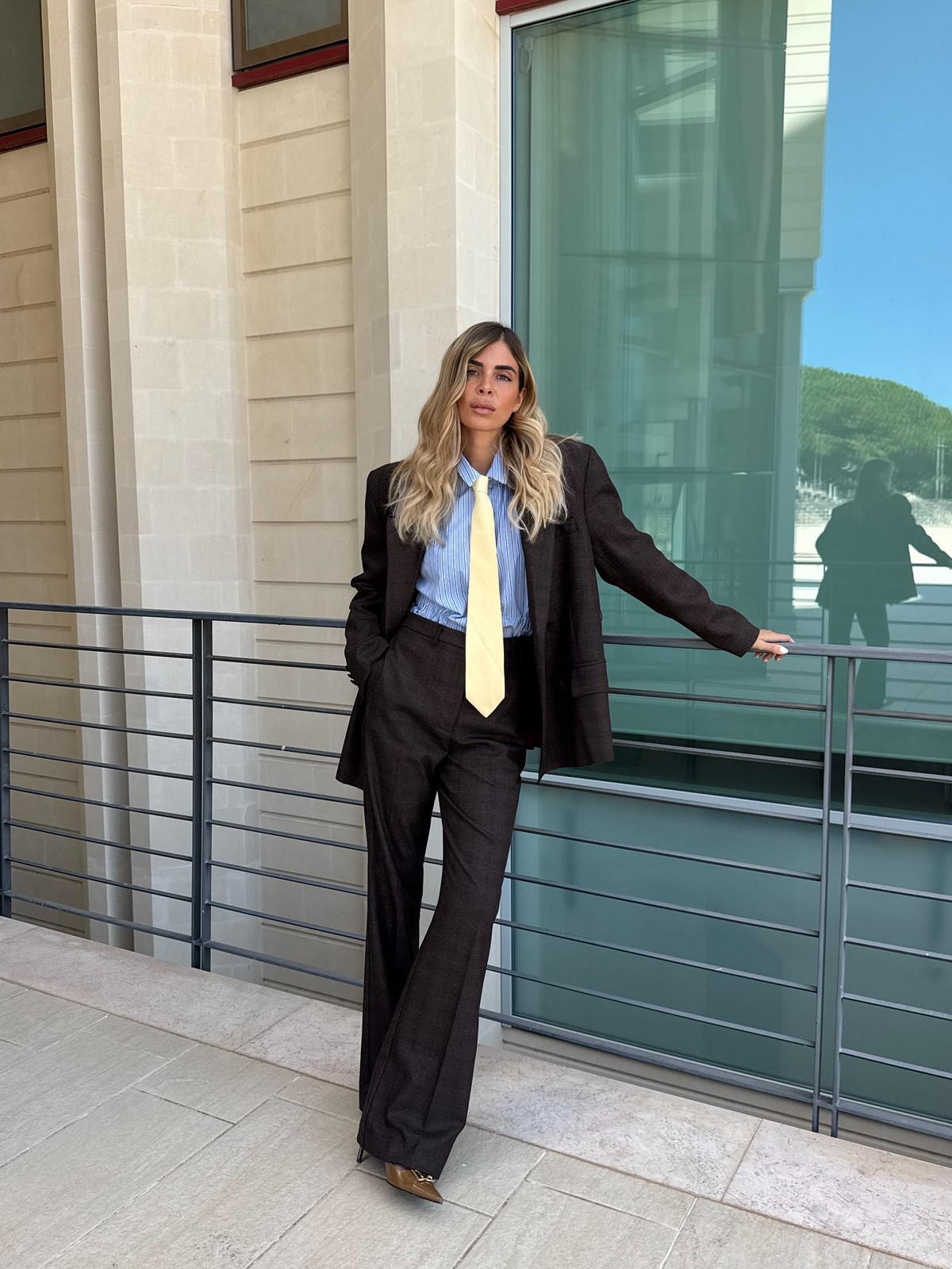 Класика, яка не виходить з моди. У сезоні осінь-зима 2025-2026 костюми набувають нових форм: об’ємні плечі, укорочені жакети, широкі брюки і сміливі відтінки. Особливо актуальні моделі з оксамиту і твіду. Брючний костюм легко адаптується під будь-який стиль — від ділового до вечірнього.