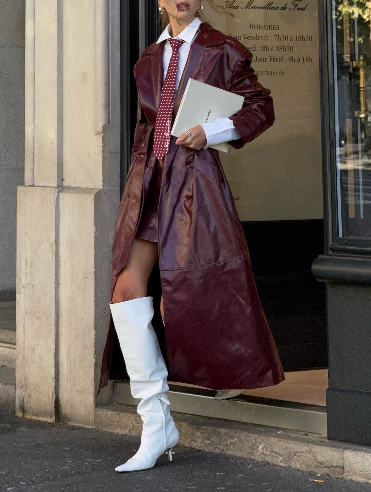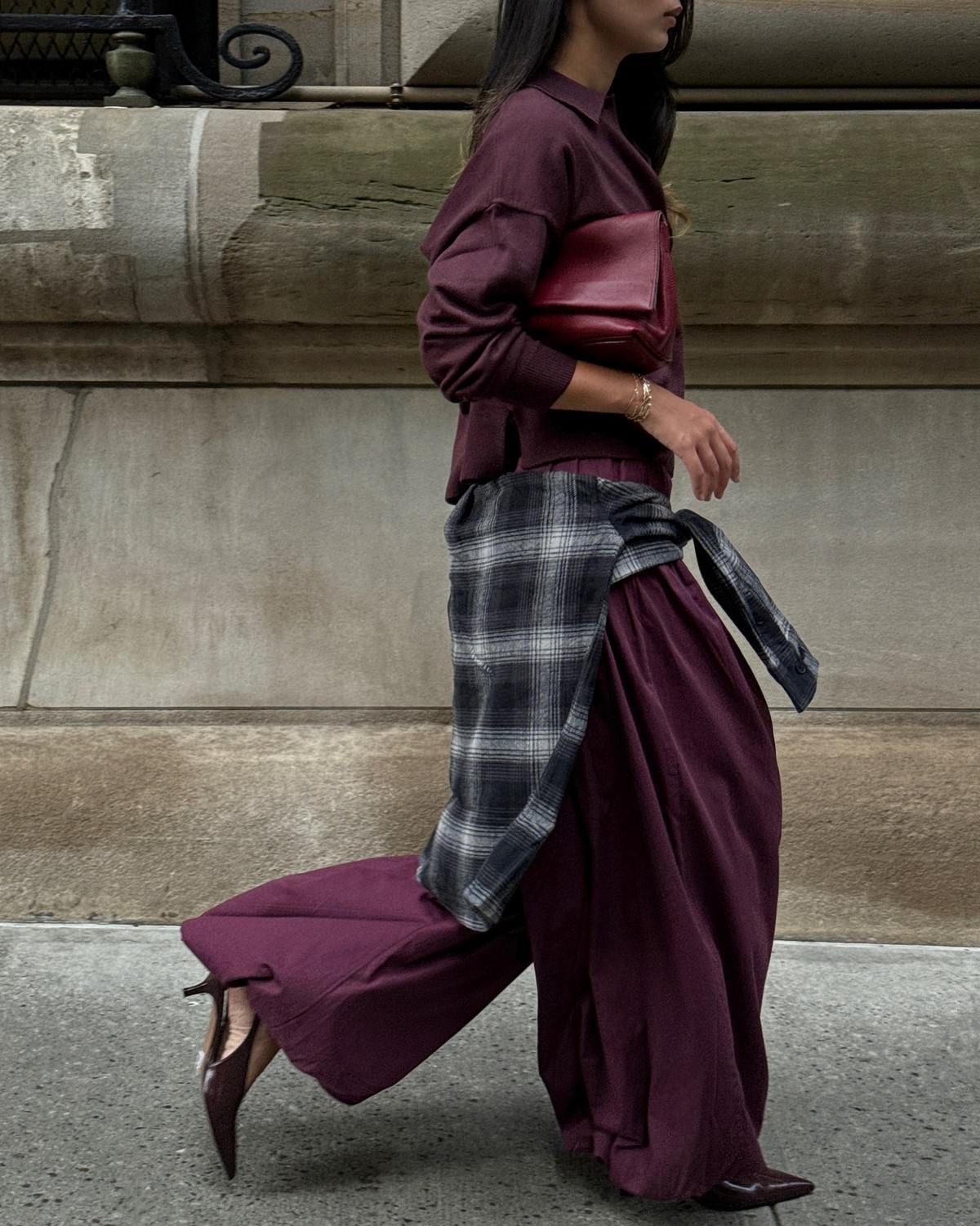 - Кольори: на піку — насичений червоний, глибокий зелений, винний, відтінки металік, а також спокійні нюдові та сірі тони.