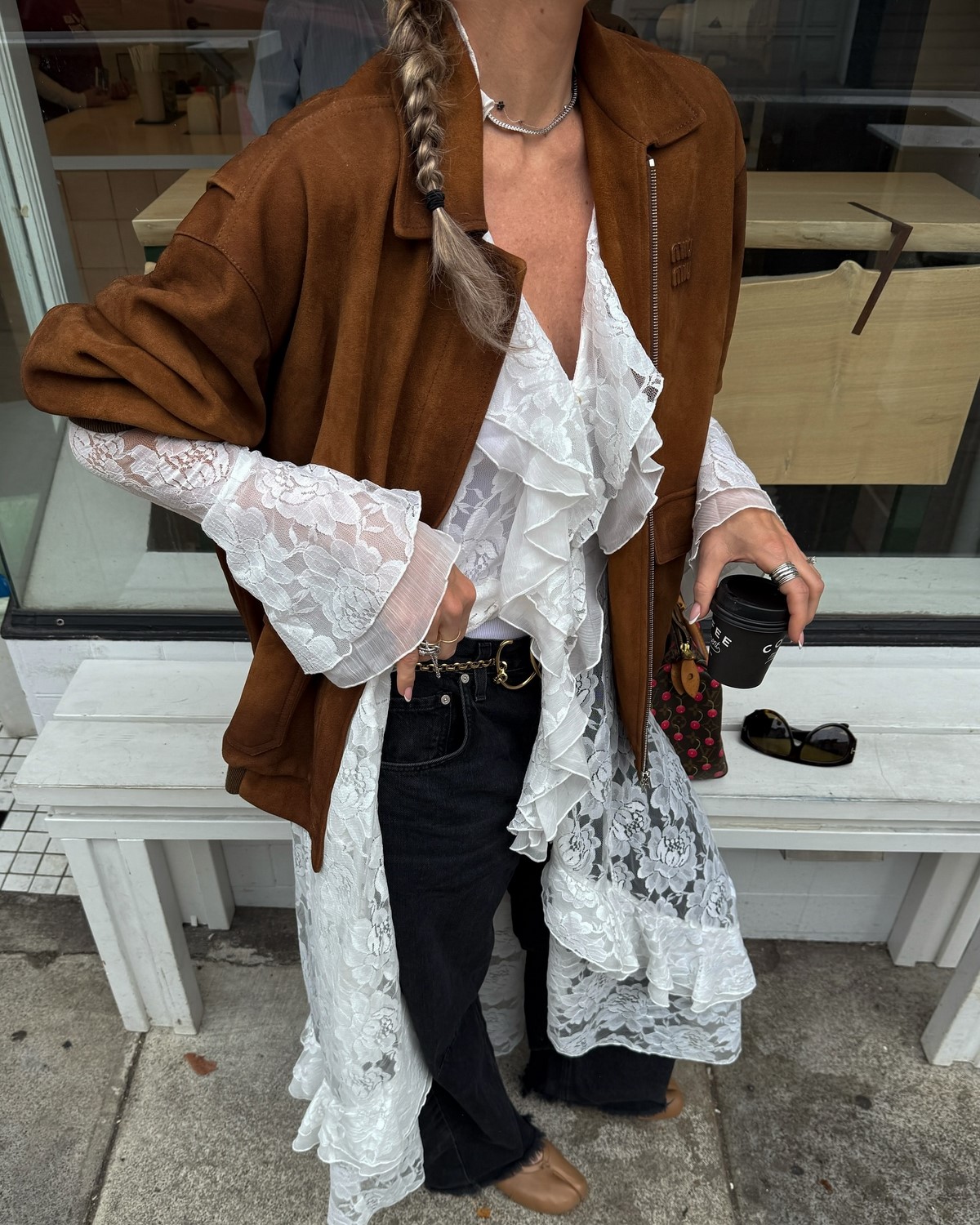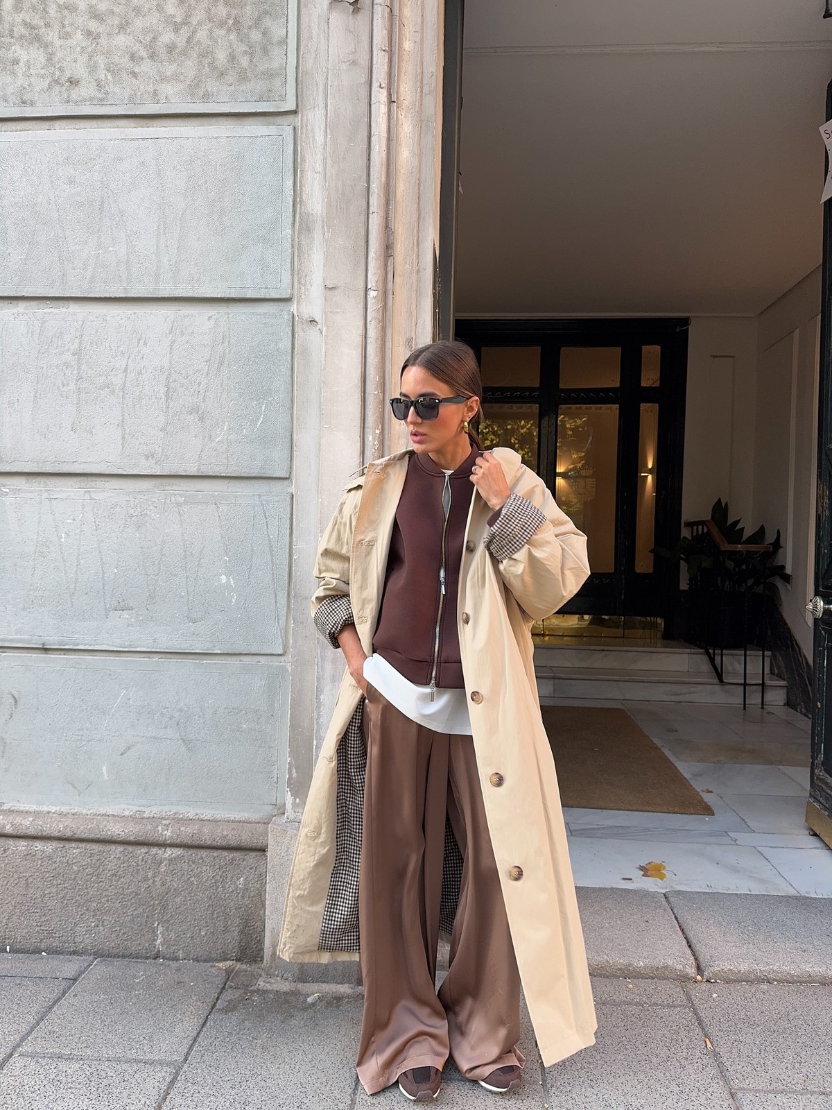 Актуальність білизняного стилю в холодну пору року — одне з головних модних відкриттів сезону. Легкі атласні сукні та топи носять у поєднанні з трикотажем, об’ємними жакетами та пальтами. Таке поєднання стилів створює багатошаровість і підкреслює жіночність у холодну пору року.