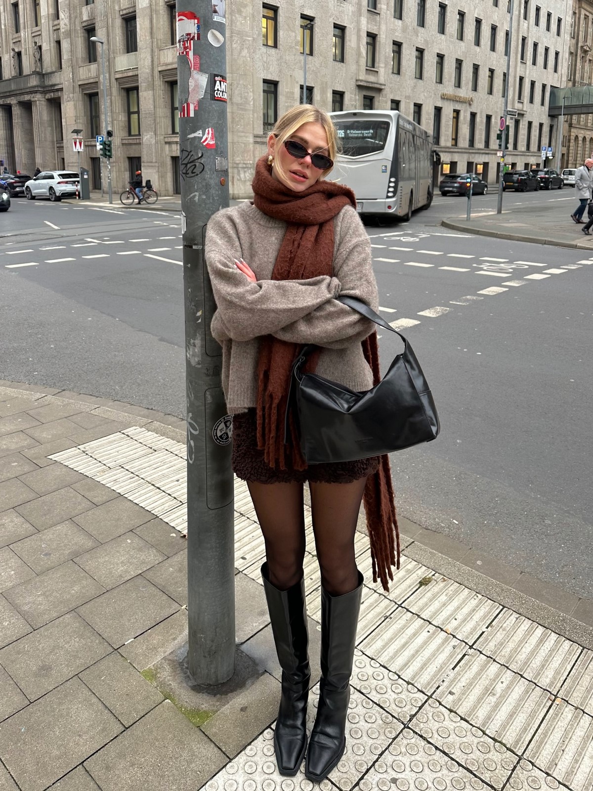 Рекомендуємо: поєднувати довгий шарф з бахромою з лаконічним взуттям і простими сумками, щоб образ залишався гармонійним.