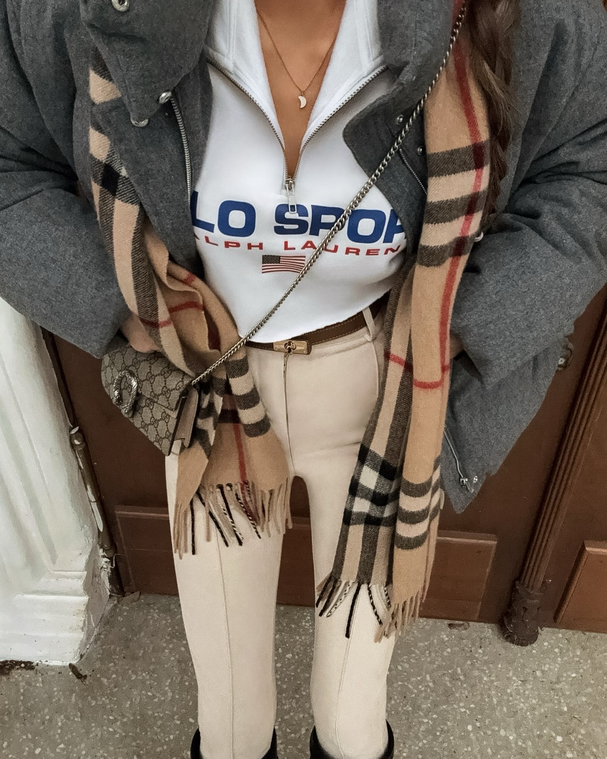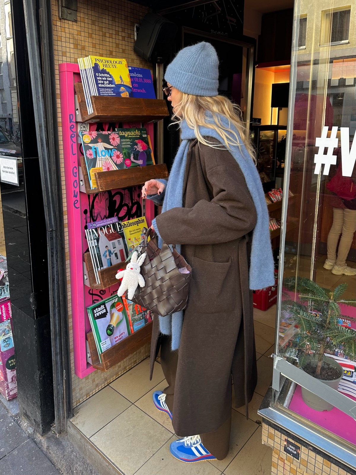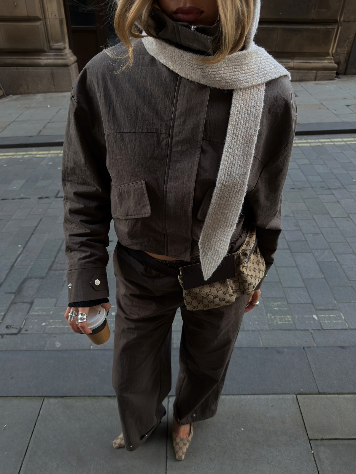Крім естетики, у такого рішення є і практичний плюс: шарф не сповзає і завжди виглядає акуратно, навіть в активному міському ритмі.