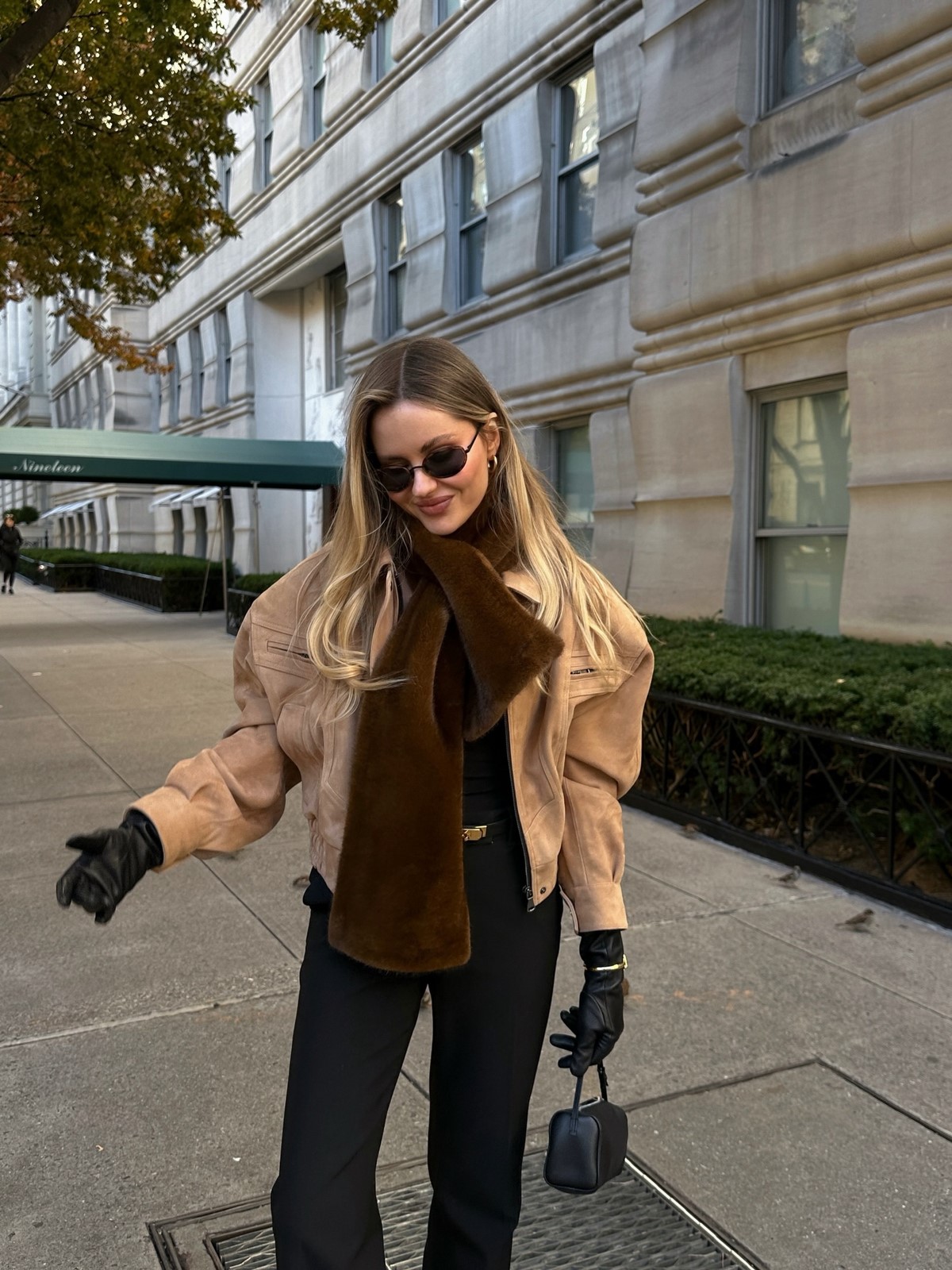 Актуально: в 2026 році хутряні шарфи часто носять недбало — накинутими на плечі або асиметрично, без складних вузлів.