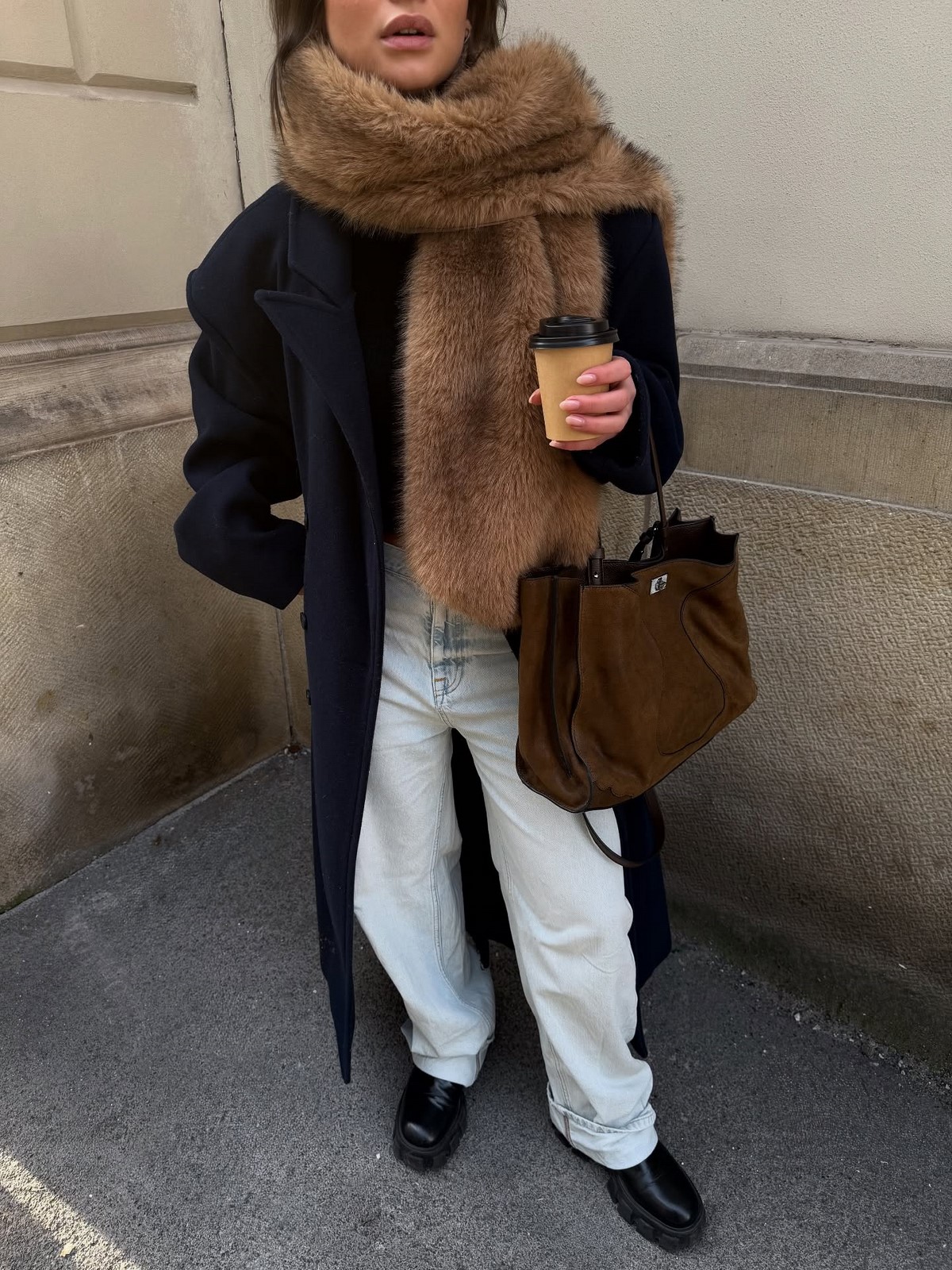 Такий шарф відмінно доповнює мінімалістичні пальта, лаконічні пуховики і навіть шкіряні куртки. Він додає образу об’єму і текстури, перетворюючи навіть найпростіший зимовий лук в модний і продуманий.