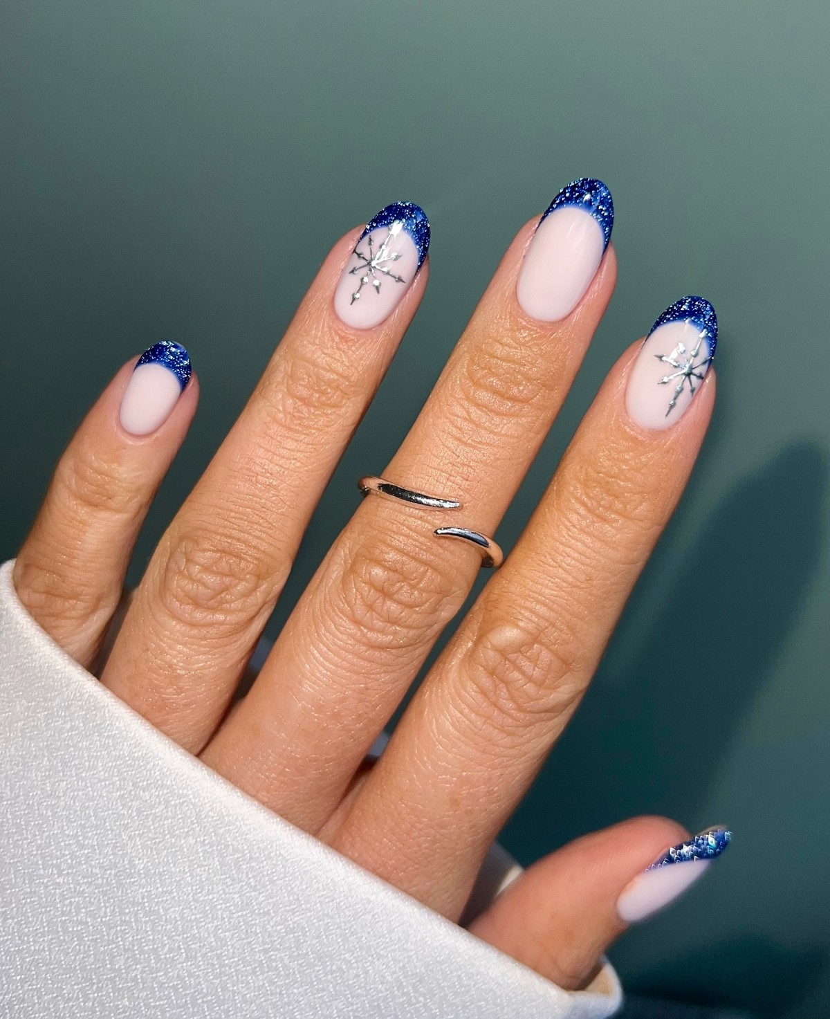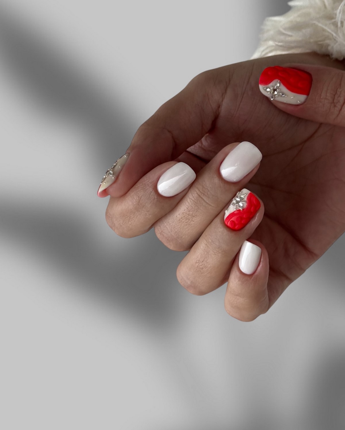 Найчастіше дизайн обмежується 1-2 акцентними нігтями, що робить образ збалансованим і візуально дорогим. Це ідеальний варіант для зимових свят, ділових образів і вечірніх виходів.